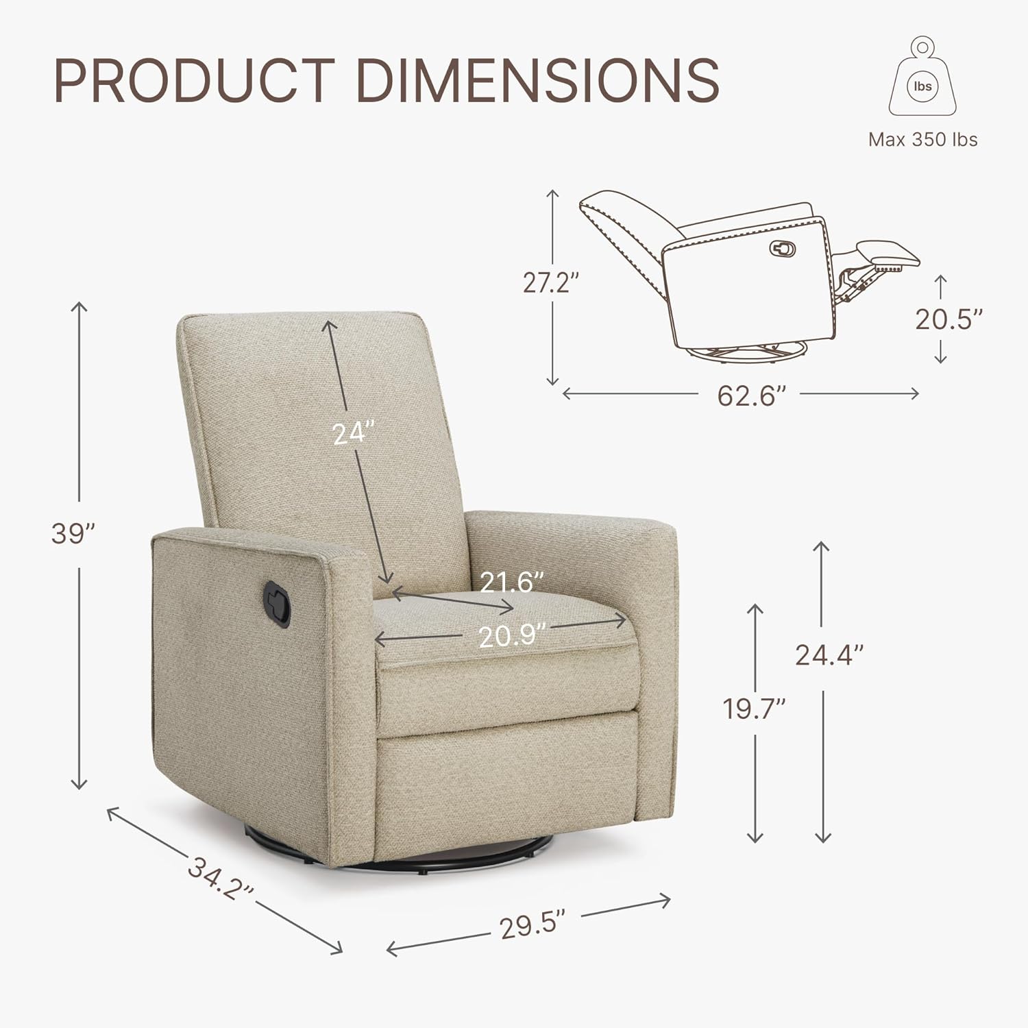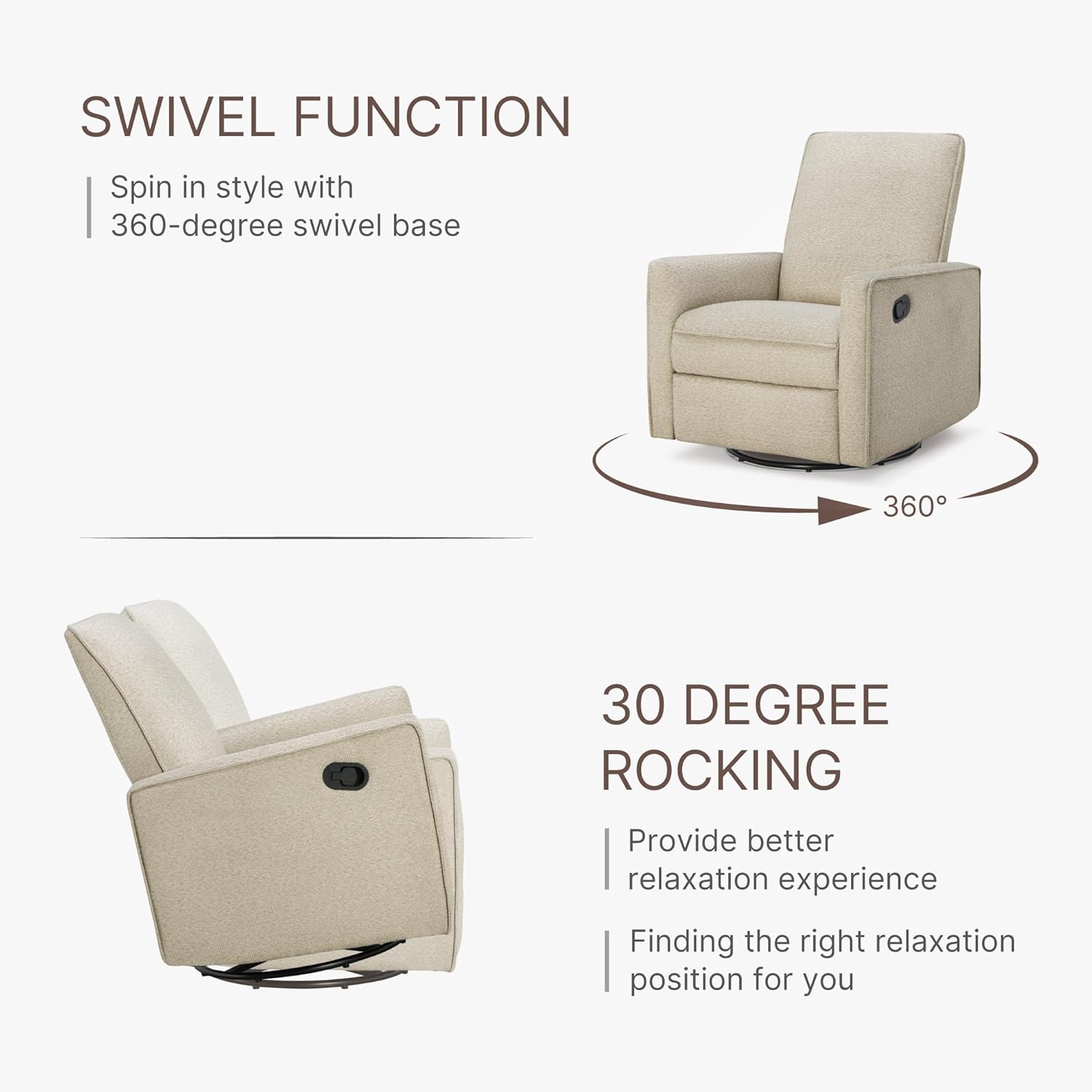 Upholstered Recliner Swivel Glider Nursery Chair Reclining Performance Fabric Rocker with Metal Base,Basketweave,Oat