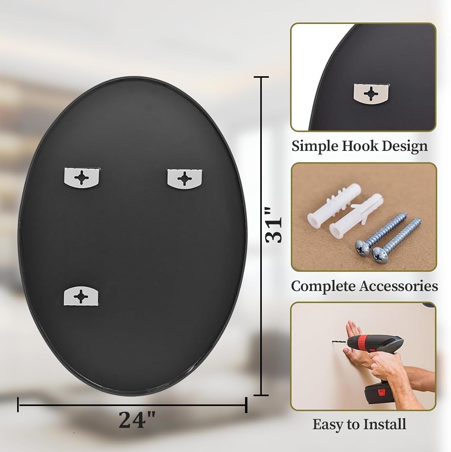 Koonmi Black Oval Bathroom Mirror, 24"x31" Bathroom Vanity Mirror, Oval Mirror for Bedroom Living Room Entryway, Hangs Horizontal or Vertical