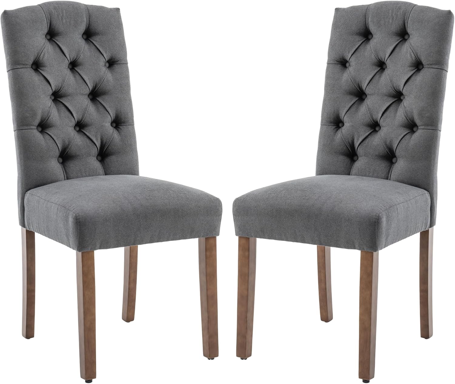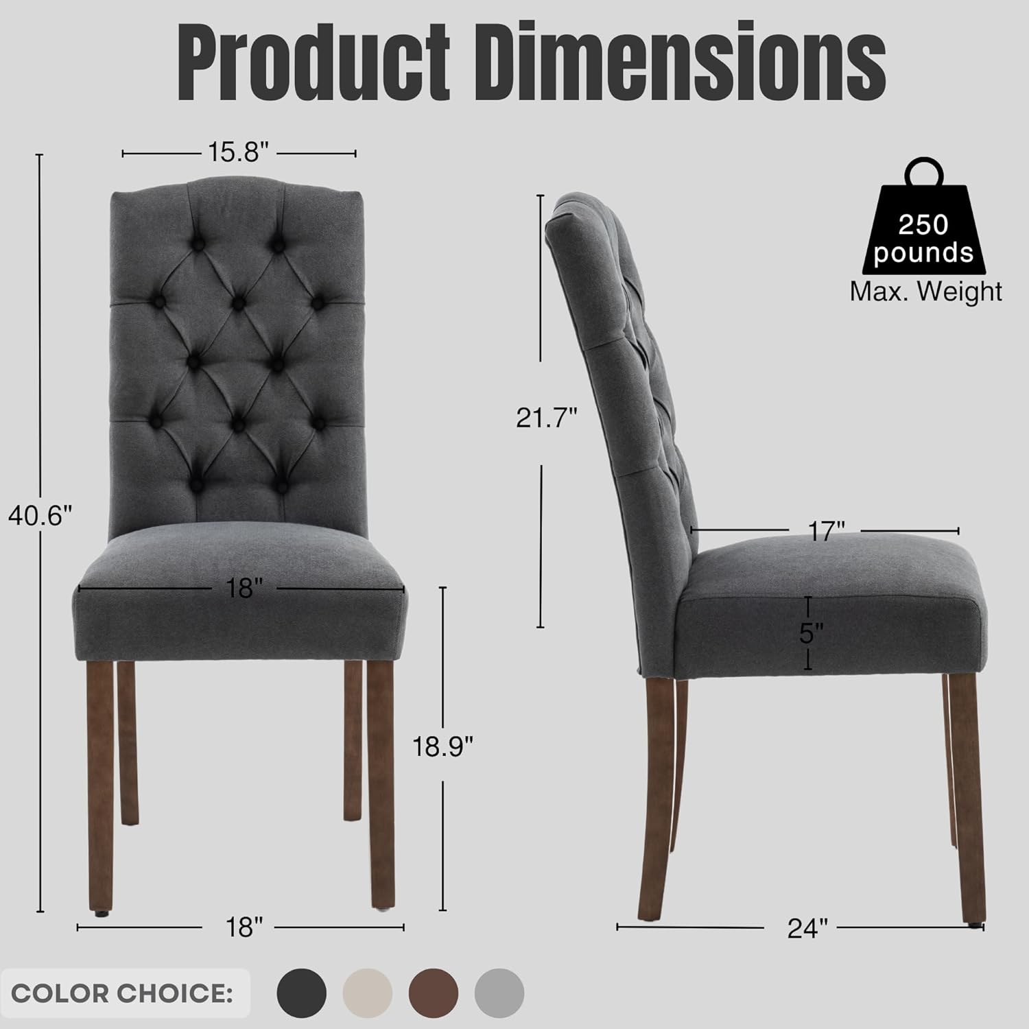 Tufted Upholstered Parsons Dining Chair Set Fabric Diner Accent Stylish Modern Kitchen Living Room with Button Sturdy Solid Wood Legs