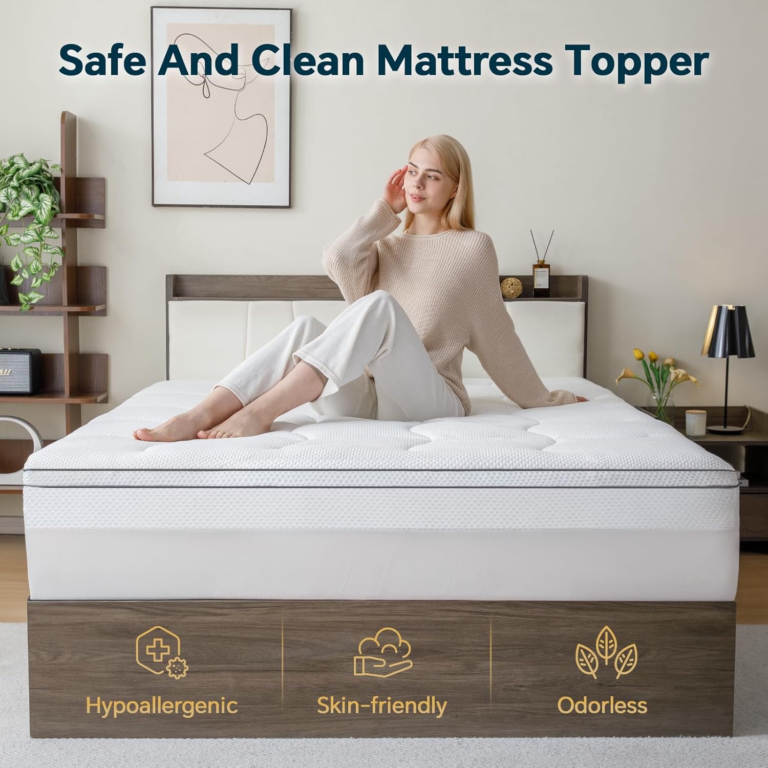 - 【Skin-Safe Materials】Made with hypoallergenic,skin-safe materials,GEMBED topper ensures a gentle touch on your skin.It has undergone rigorous testing to meet health and safety standards,making it ideal for those with sensitive skin,providing a safe,irritation-free sleep environment
