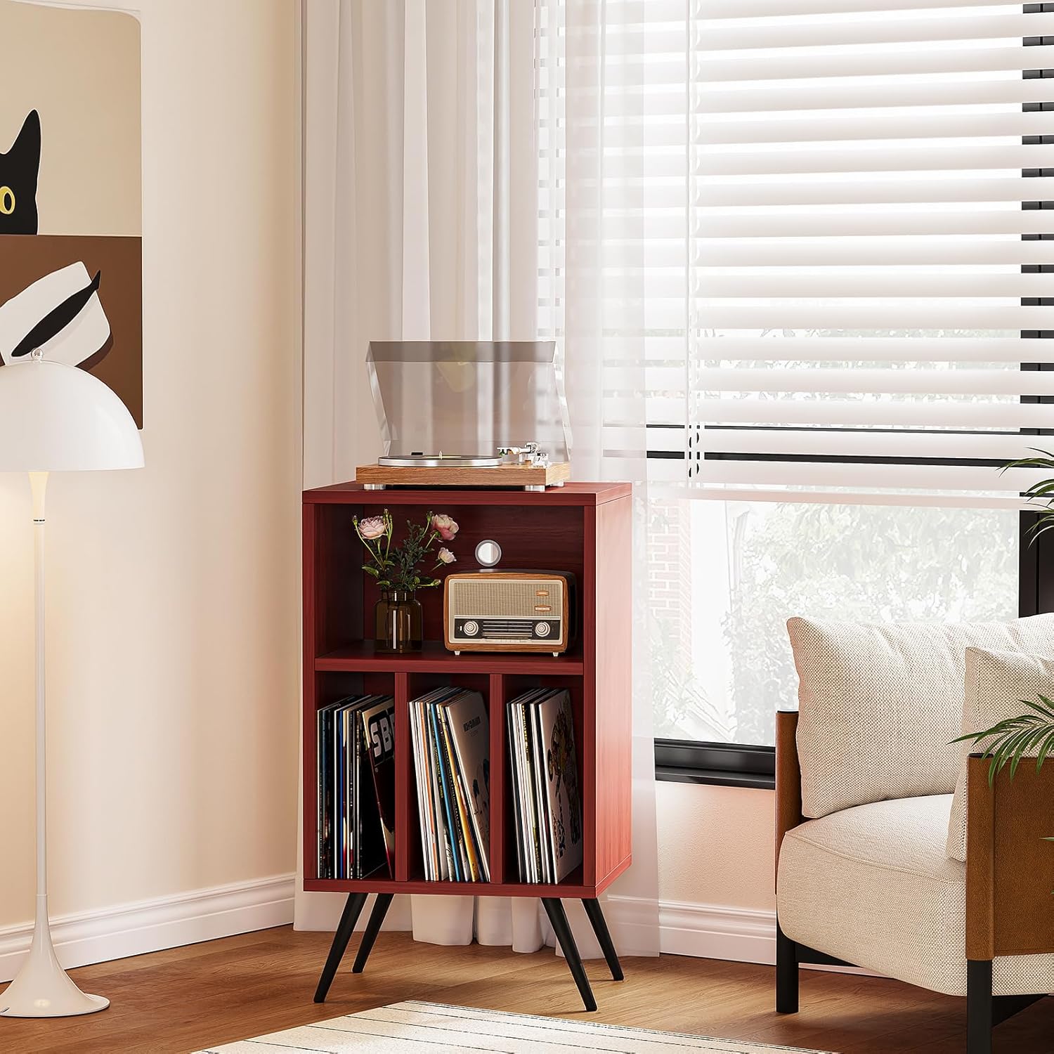 - Ample Vinyl Storage: With 4 spacious open cabinets, you can store up to 100+ vinyl records with ease. The built-in display shelf is perfect for showcasing your favorite records, adding a personalized touch to your vinyl setup.