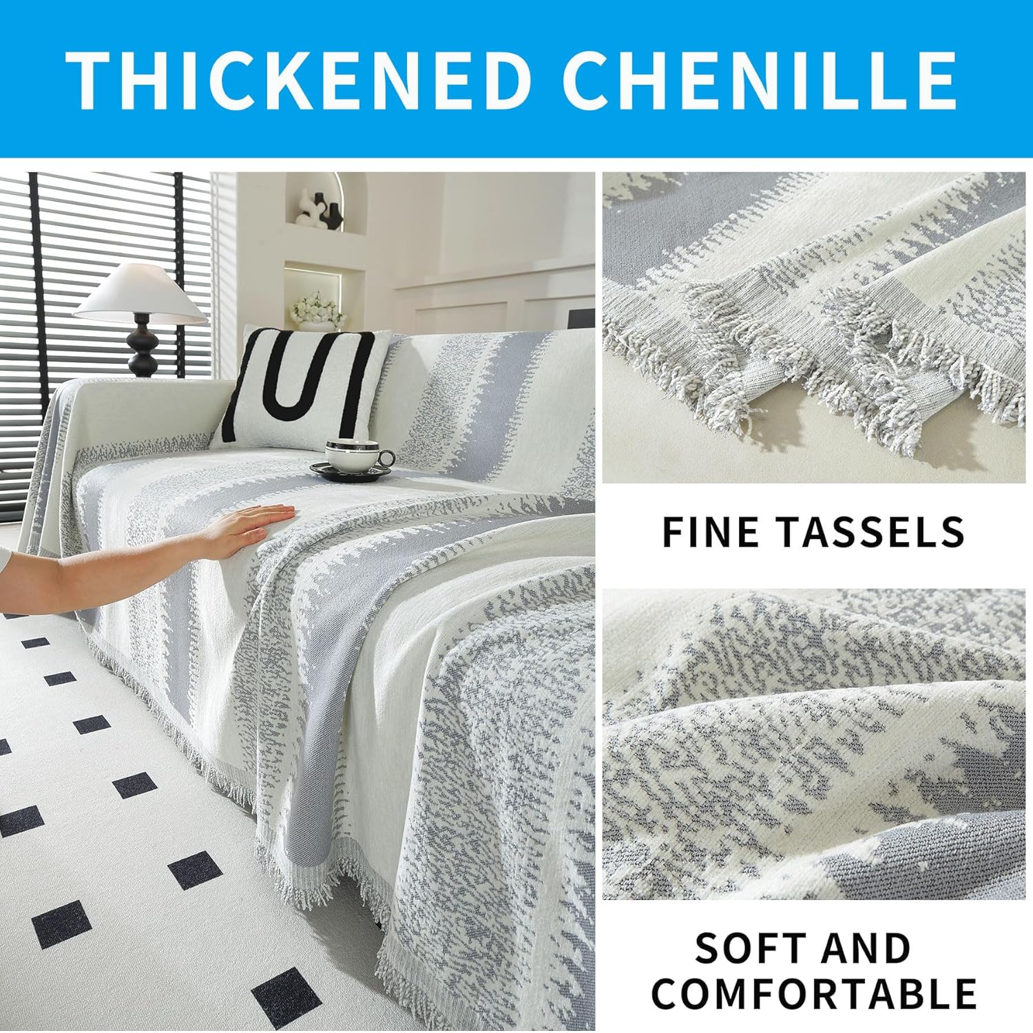 - HIGH-QUALITY MATERIALS: choose durable pet-friendly materials as the raw material of the oversized couch cover, as a wear-resistant couch covers for dogs is able to withstand the scratching of the pet dog, even if it is not easy to use for a long time to deform or break, soft chenille couch cover blanket is made of jacquard process, three-dimensional sense of the sofa, so couch covers for sofa has a good decorative effect, to enhance the home's overall grade and aesthetics.