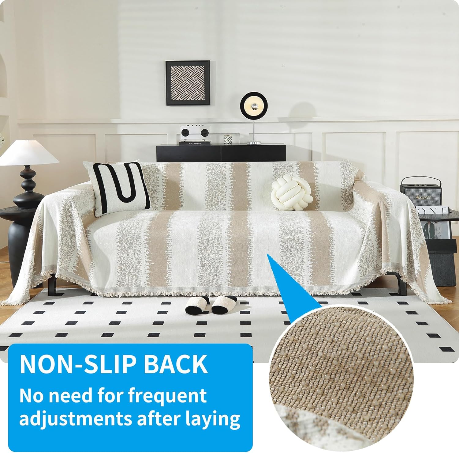 - NON-SLIP BACKING: Boho sofa covers with rubber dotted non-slip backing are like solid guardians that firmly hold their place when children or pets are jumping on the sofa in a lively manner. Effectively preventing sliding and displacement of non-slip recliner couch cover, the couch covers for 3 cushion couch sofa will not need to be adjusted as often, ensuring the harmony and beauty of the home environment in an elegant and safe way.