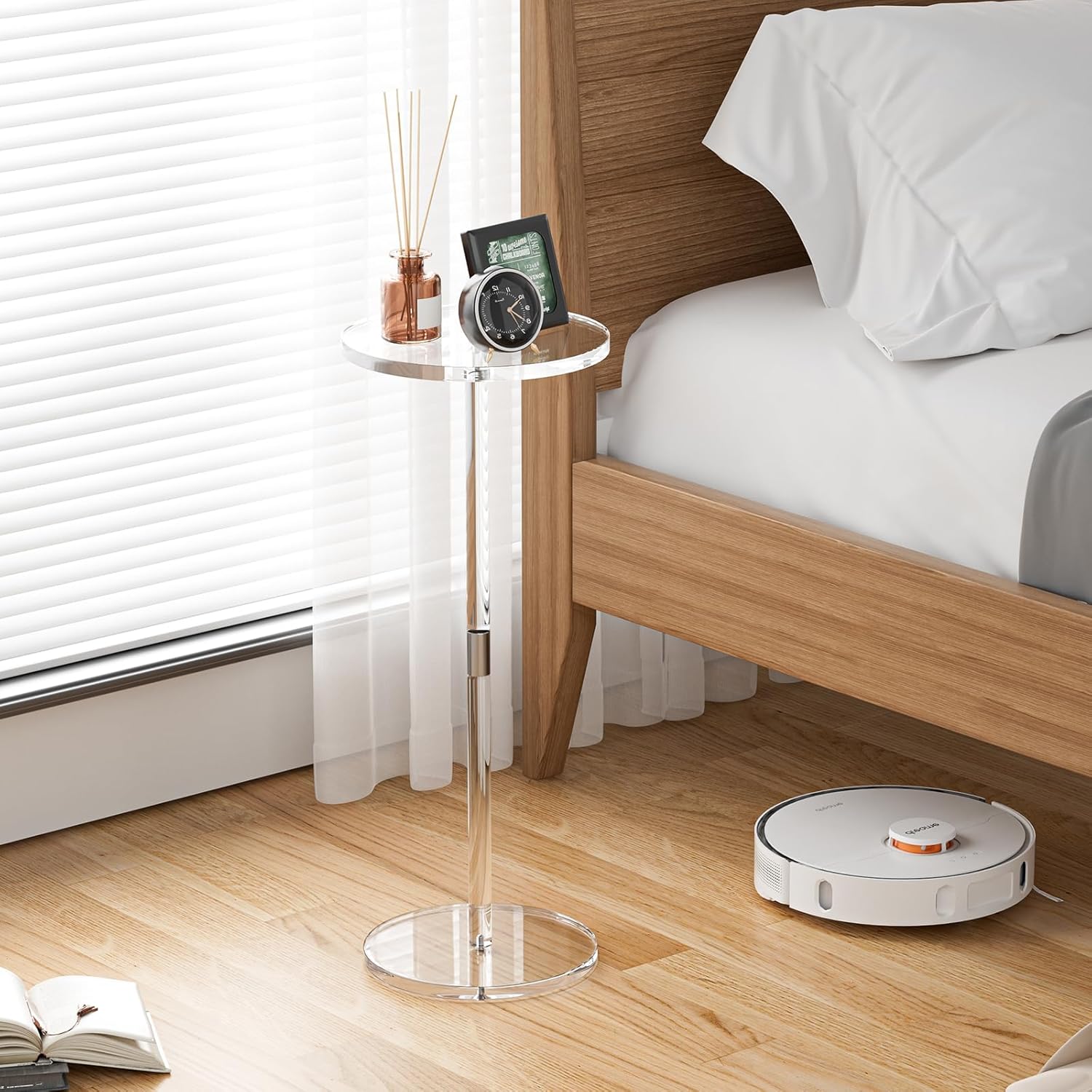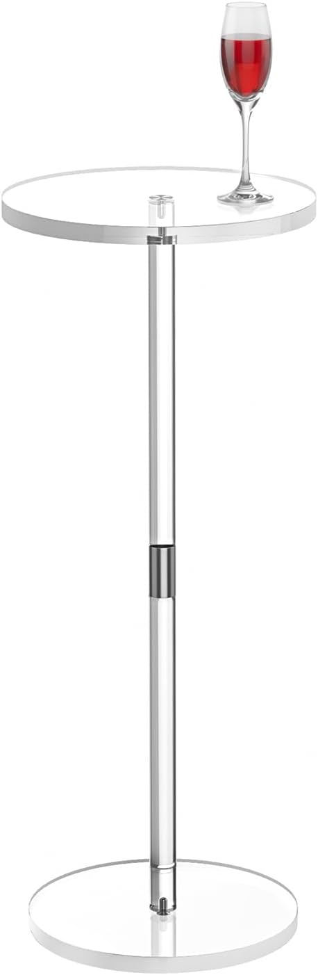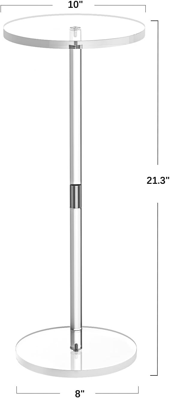 Acrylic Drink Table for Small Spaces, Clear Side Table, 10" L x 10" W x 21.3" H, Round End Table for Living Room, Bedroom, Office, Easy Assembly
