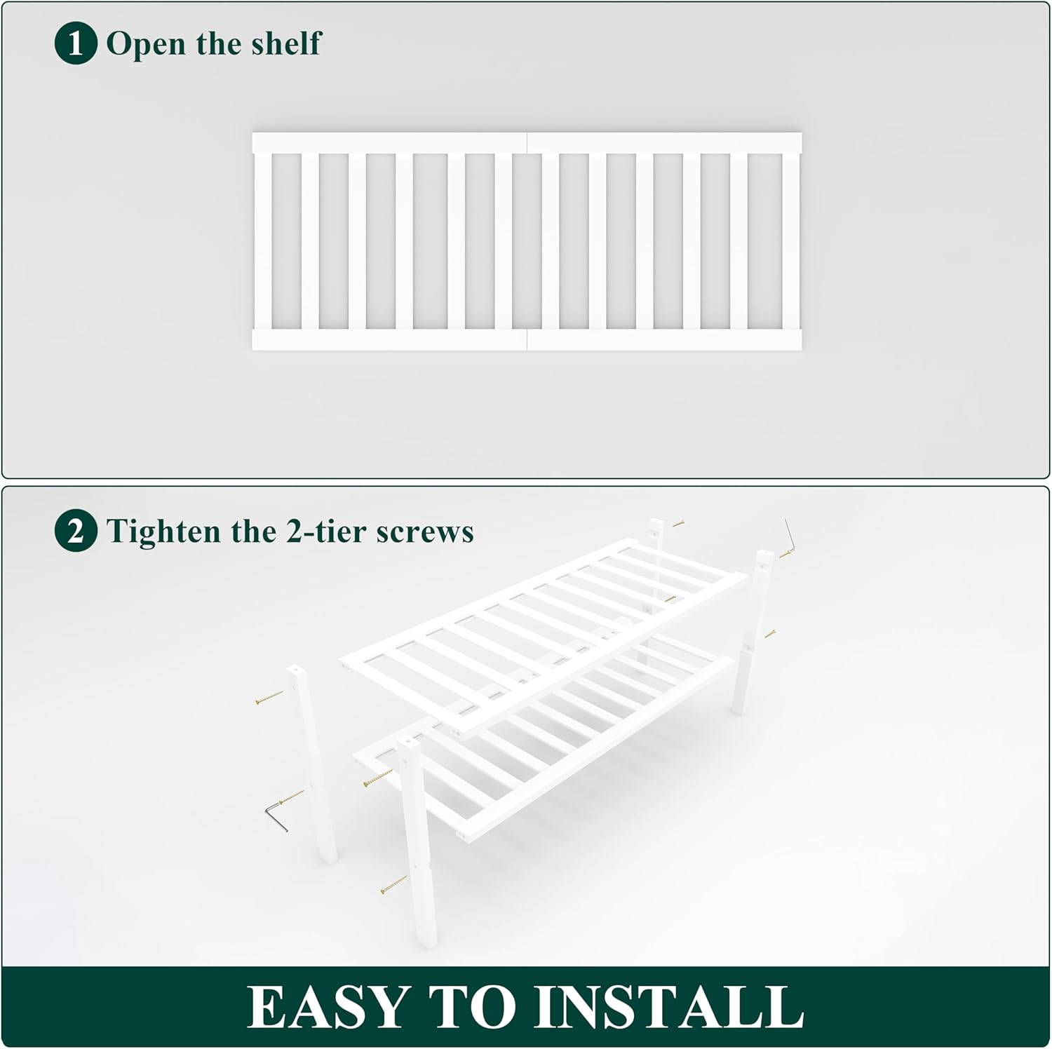- [Large Capacity & Sturdy] 2 tiers measuring 26.77" W × 11.02" D × 12.99" H, each shelf holds up to 30 lbs, suitable for shoes, bags, baskets, plants, or other daily essentials