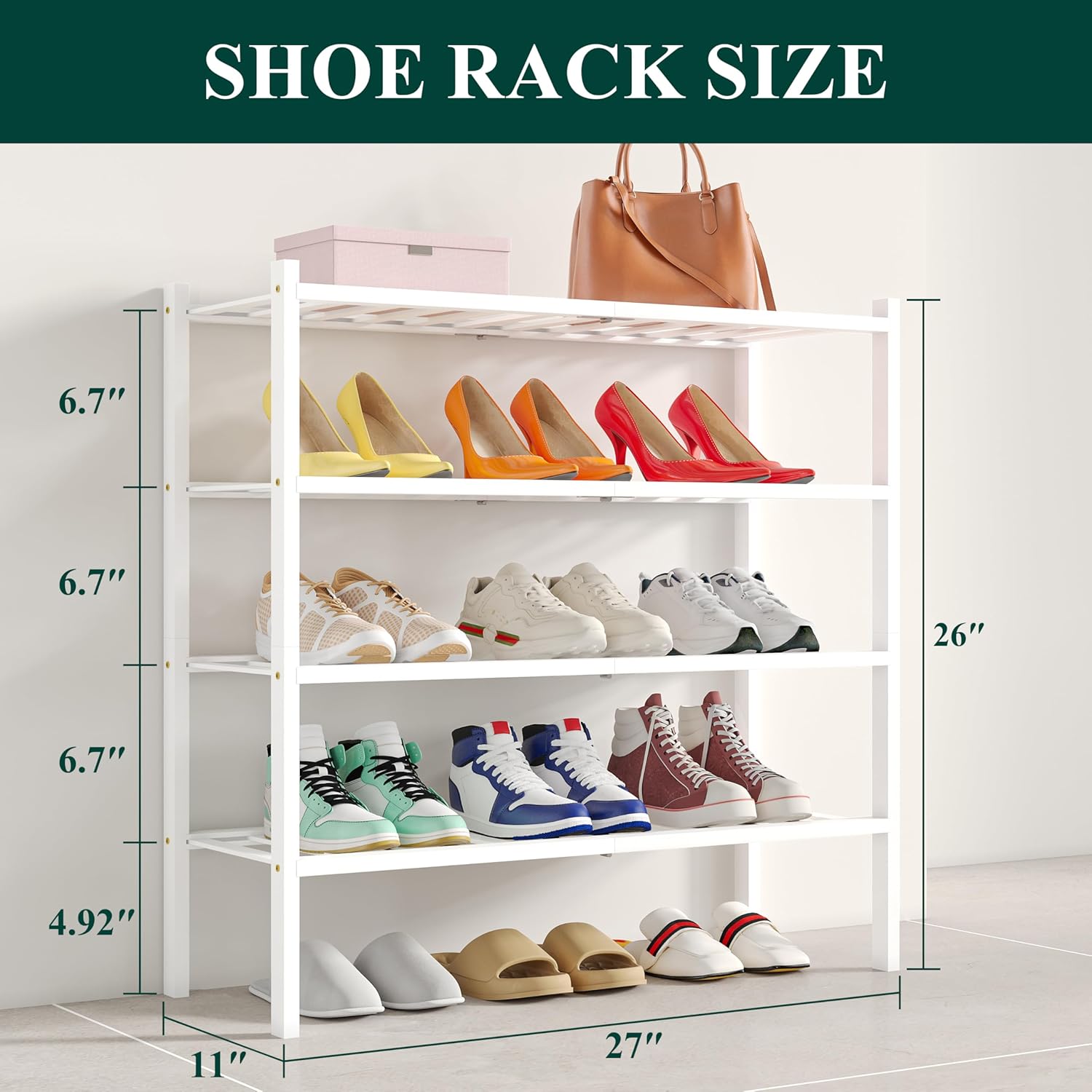 Smiry Shoe Rack, 4 Tier Bamboo Shoe Organizer, Stackable Free Standing Wooden Shoe Storage Shelf for Closet, Entryway, Front Door Entrance, White