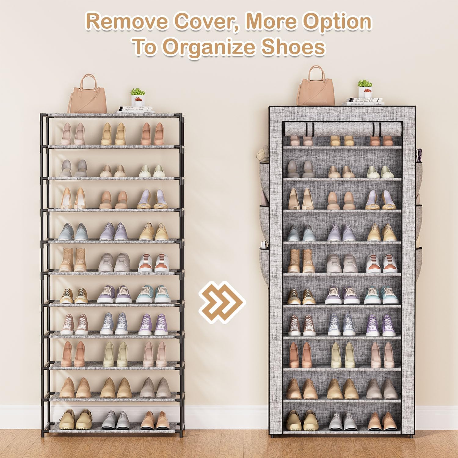- 【WIDELY APPLIED COVERD SHOE RACK】- Tall large shoe rack is perfect for putting in different places indoors. It is an ideal shoe rack for entryways, garages, closets, bedrooms, hallways, cabinets, front doors, living rooms, porches, storage rooms and dormitories. It can also be a great closet organizer for your boots, bags, clothing, linens, fabrics, toys, books, tools and other things.