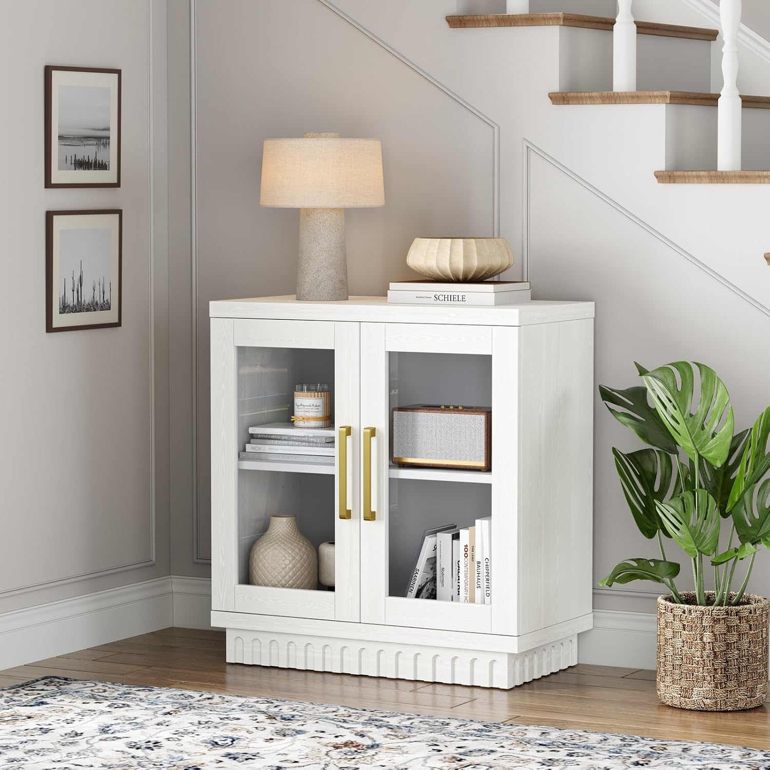 Buffet Cabinet with Storage, Sideboard Buffet with Glass Doors, Cupboard Console Table Accent Cabinet for Hallway, Entry, Kitchen, Living Room, Dining Room, Montauk White