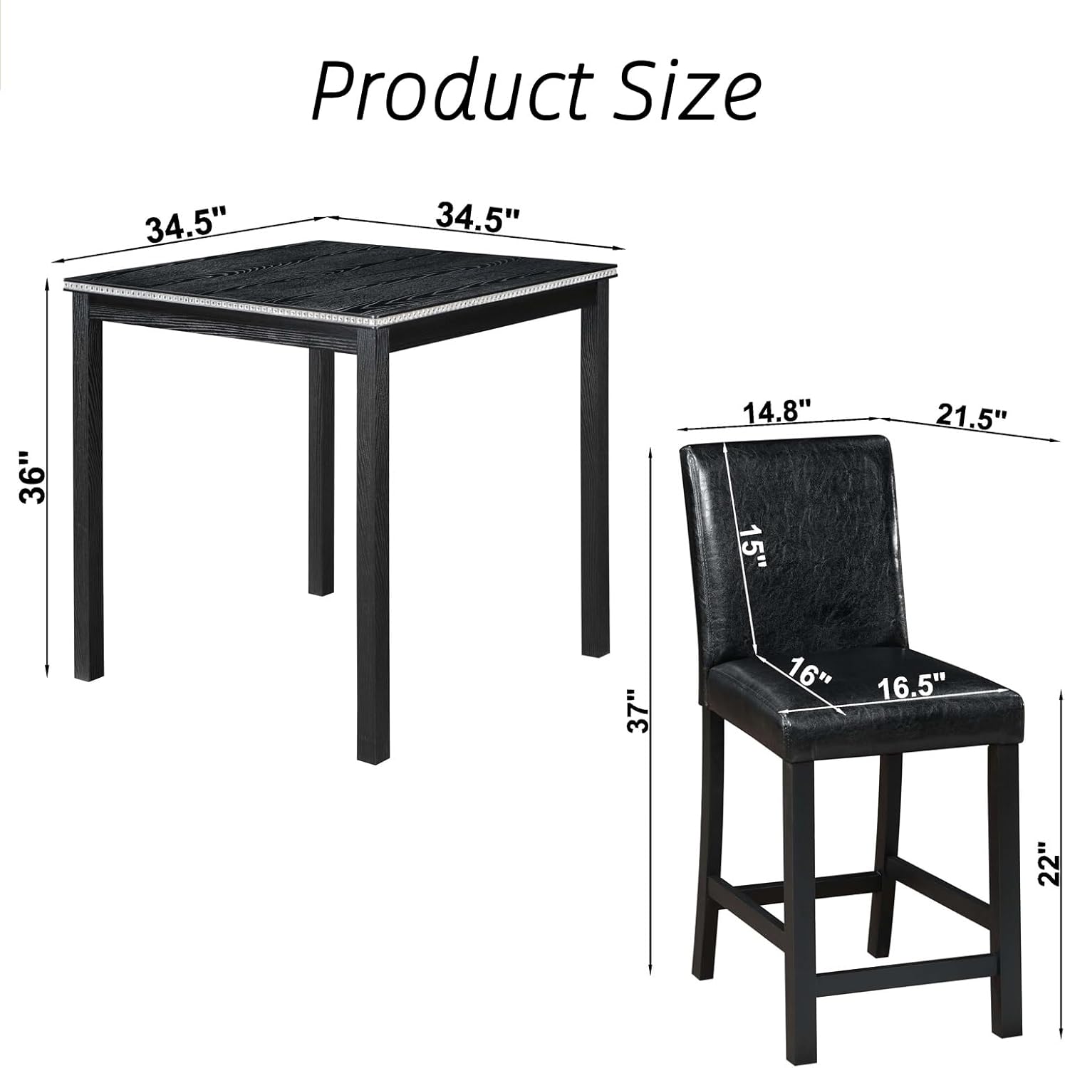 Counter Height Square Dining Table Set with 4 Upholstered Chairs - Easy to Assemble, Black
