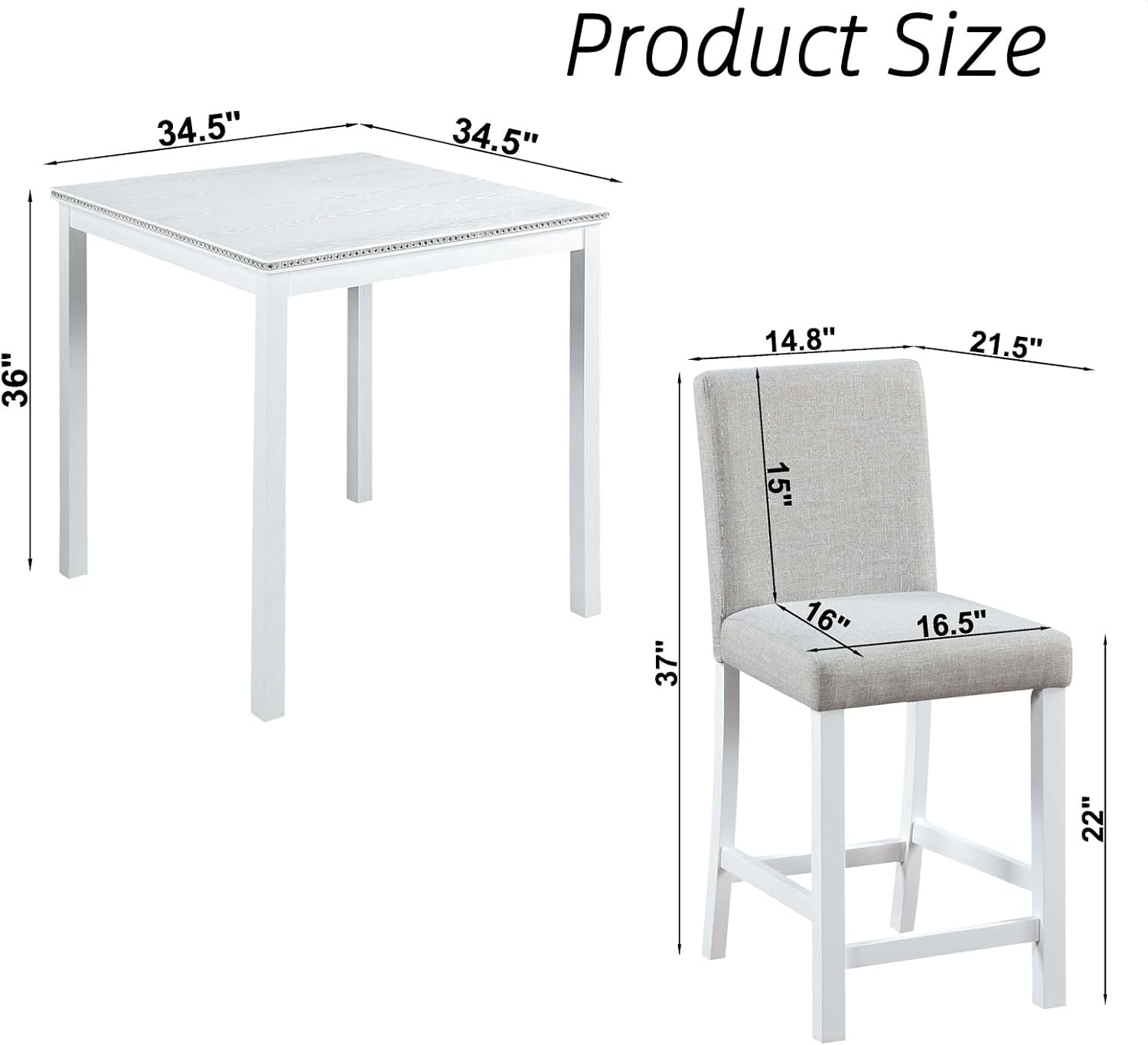 Dining Table Set for 4, Counter Height, Square, White - Easy to Assemble, Includes 4 Upholstered Chairs for Living, Dining, Guest Room