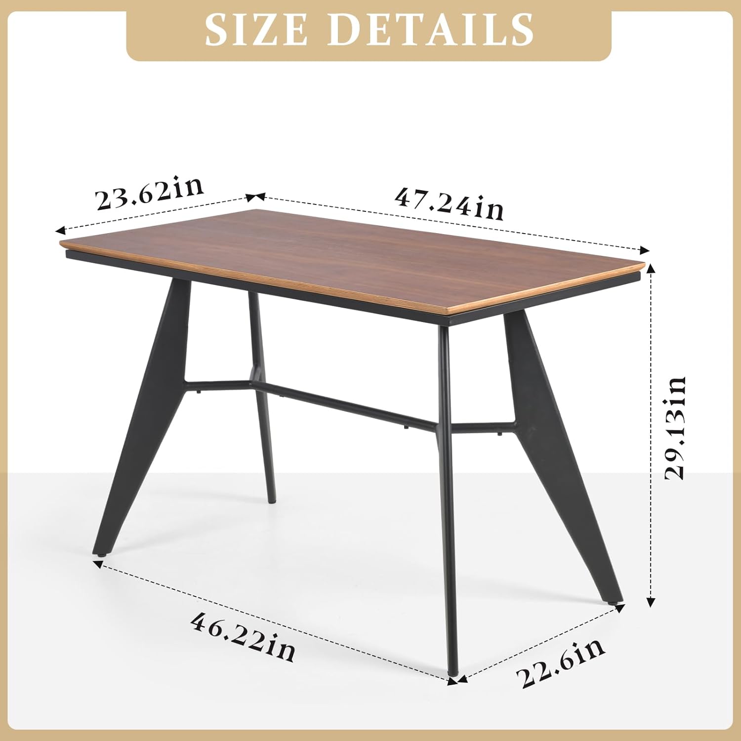 Modern Industrial Table with Heavy-Duty Steel Frame, 47.3" x 23.6" Rectangular Tabletop Walnut Oak Finish, Home Office Computer Desk, Workstation, Writing Desk, Minimalist for Small Spaces
