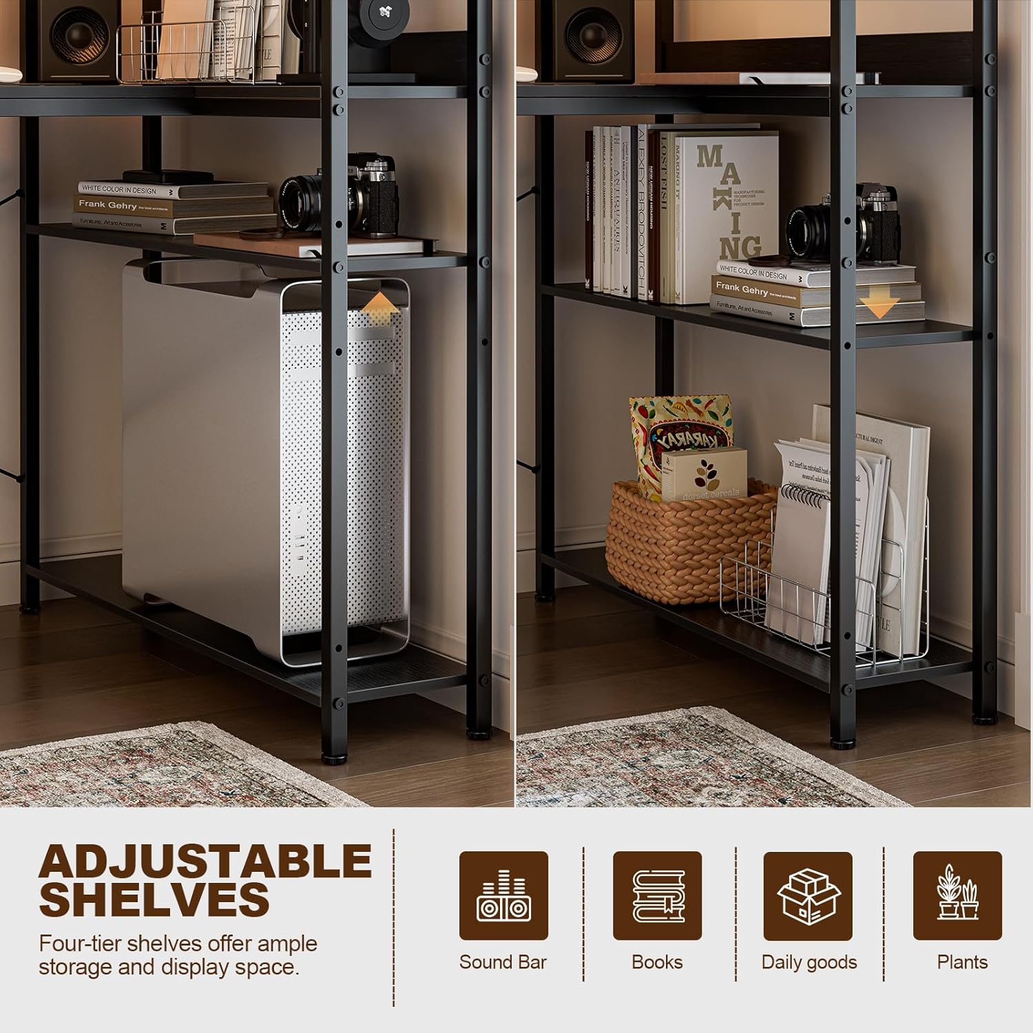 - Reversible L-shaped design with 2-tier shelves for flexible corner space setup.