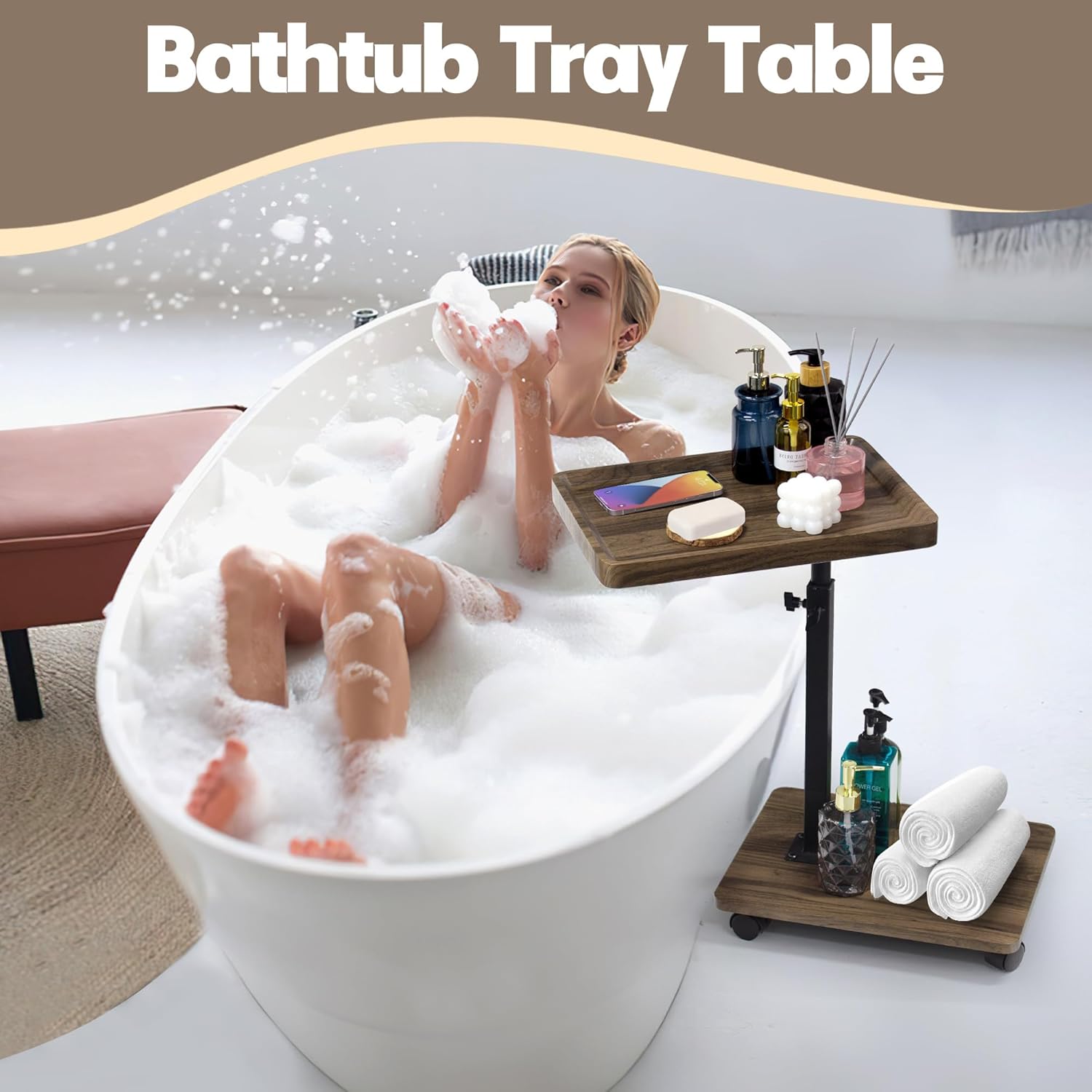 - Multipurpose Tray Tables: This modern adjustable height narrow side table can easily be paired with other furniture, and the legs of the small side table can flexibly slide into the bottom of the sofa, bed or chair. It can be used as a convenient food or drink table, tv table, night stand, snack table, bedside table, wine table, bathtub tray, bed tray, dinner tray table or for other purposes, and also serve as a perfect interior decoration.
