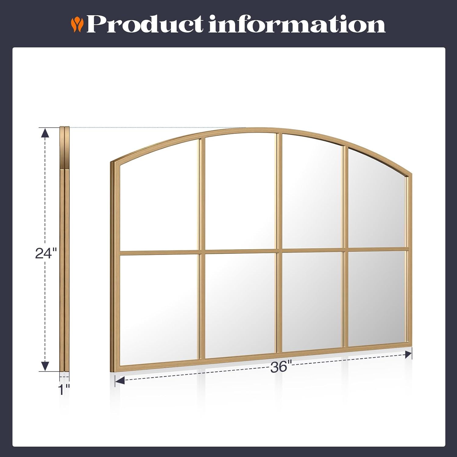 Wide Arched Mirror, 36" x 24" Gold Window Mirror, Antique Brass Farmhouse Mirrors for Living Room Dining Room Bedroom Fireplace Hallway Entryway
