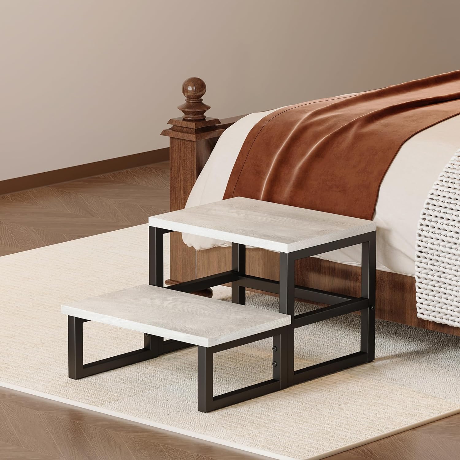 - 【Last For Long Use】Made of durable engineered wood planks and a sturdy metal frame, the back of the planks and the bottom crossbar provide extra stability, ensuring that the wooden step stool can withstand up to 400 pounds. In addition, each foot is equipped with non-slip pads to prevent accidental tipping and scratching of the floor.