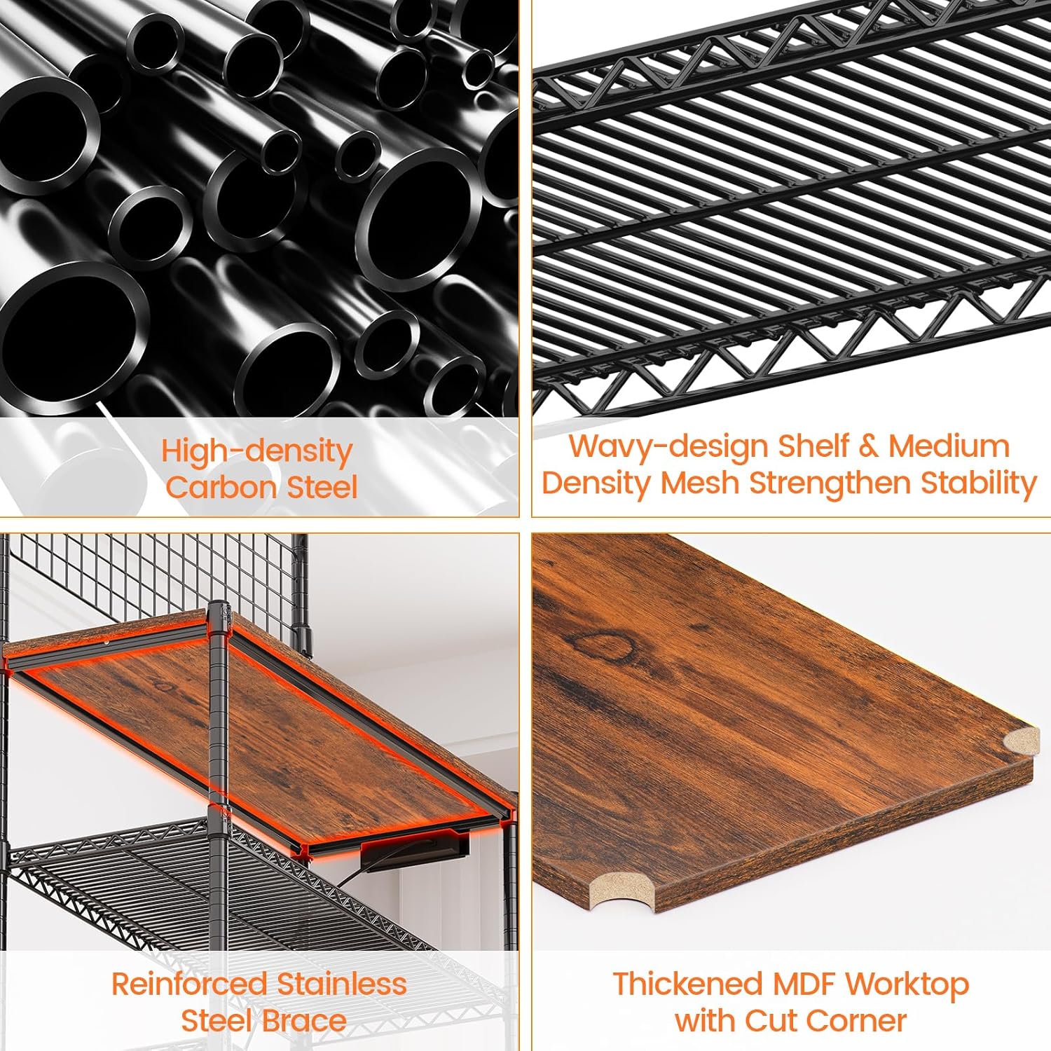- NSF Certified Kitchen Rack - Leteuke metal bakers rack is certified by NSF/ANSI Standard 2, reliable in quality. As a high-standard commercial-grade kitchen cart, the breathable wire mesh design of each metal shelf makes it perfect for storing fruits and vegetables in a dry environment.