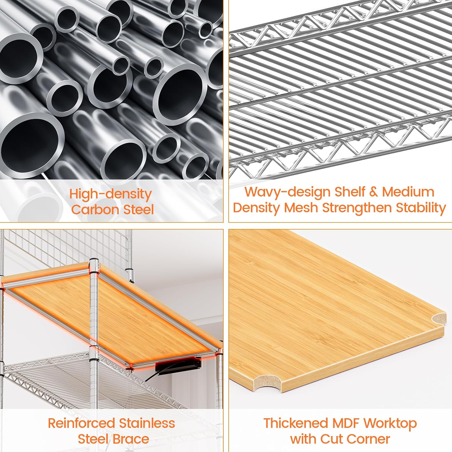 - Sturdy & Stable Construction - Made of high-density carbon steel, removable wood countertop, this microwave stand is sturdy and rustproof. Your kitchen appliances will find a reliable home on this sturdy kitchen cart. Also, the height of this kitchen rack cart can be adjusted with secure clips in 1"increments.