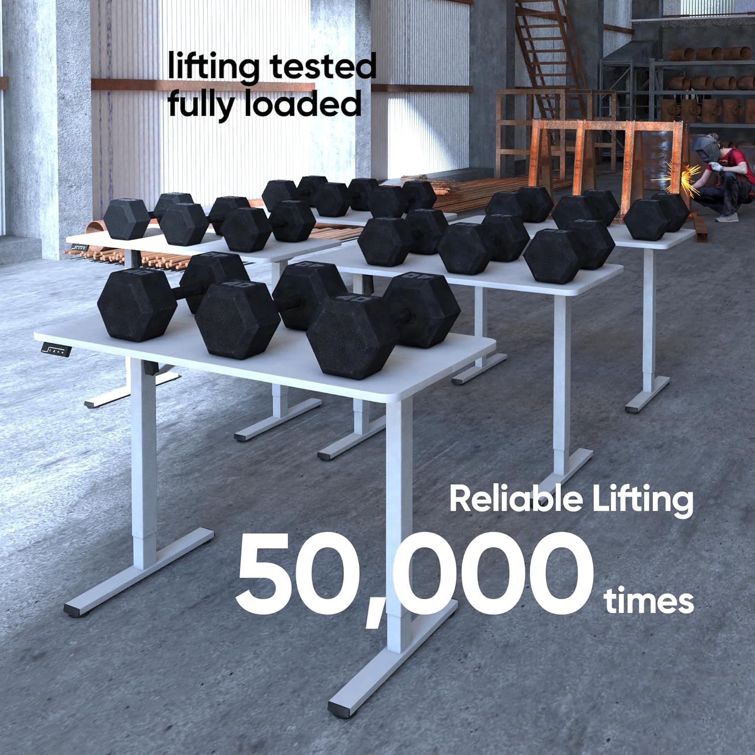 - Premium Quality & Stability: Crafted with an industrial-grade alloy steel frame and FSC-certified wood desktop, our standing desk provides exceptional stability, supporting up to 154 lbs, even after 50,000 tests.