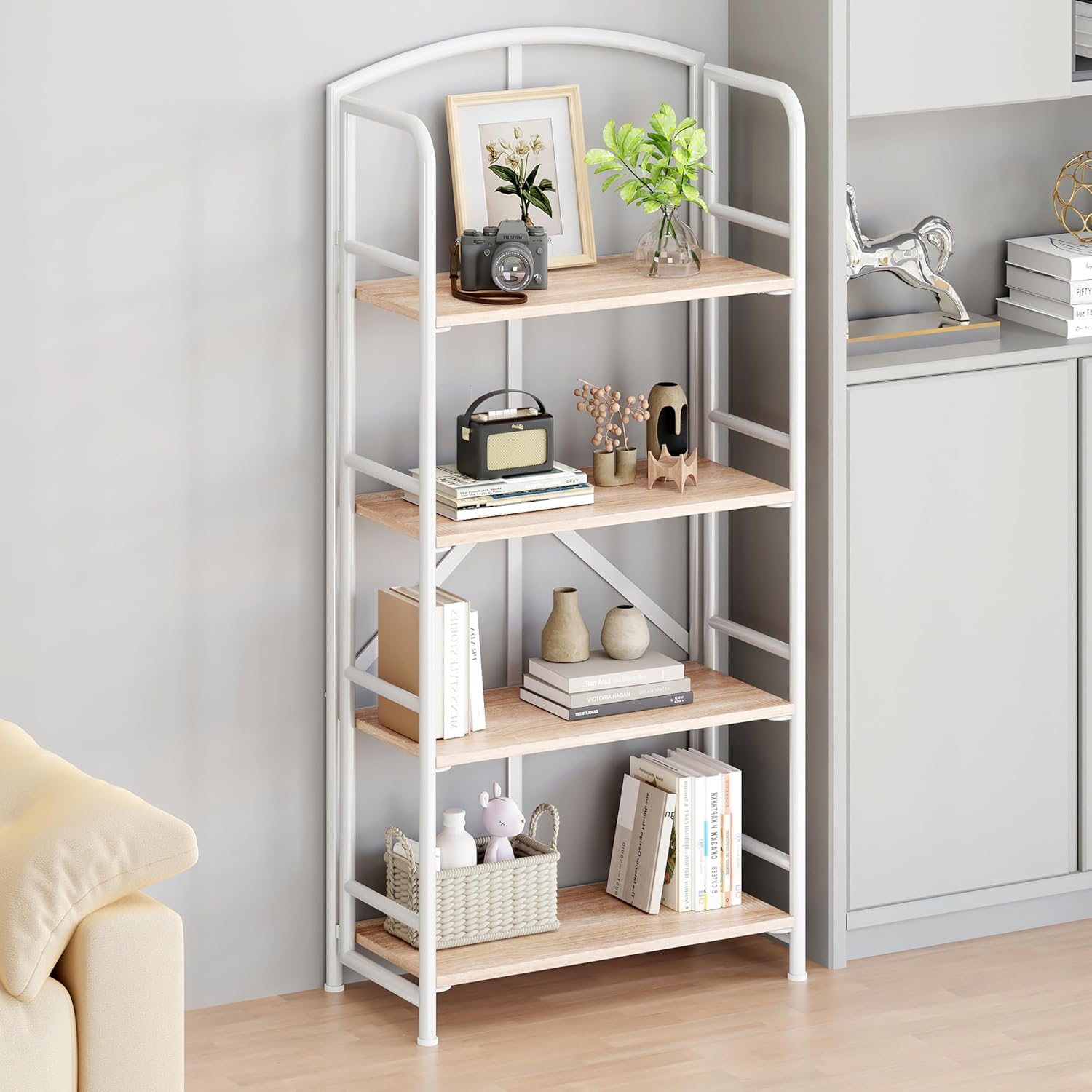 - Stable and Durable Collapsible Storage Shelves: The bookshelf with combines a sturdy metal frame to ensure stability and durability. This open bookshelf exhibits excellent weight-bearing capacity, a sleek appearance, and stability, guaranteeing quality for prolonged use.
