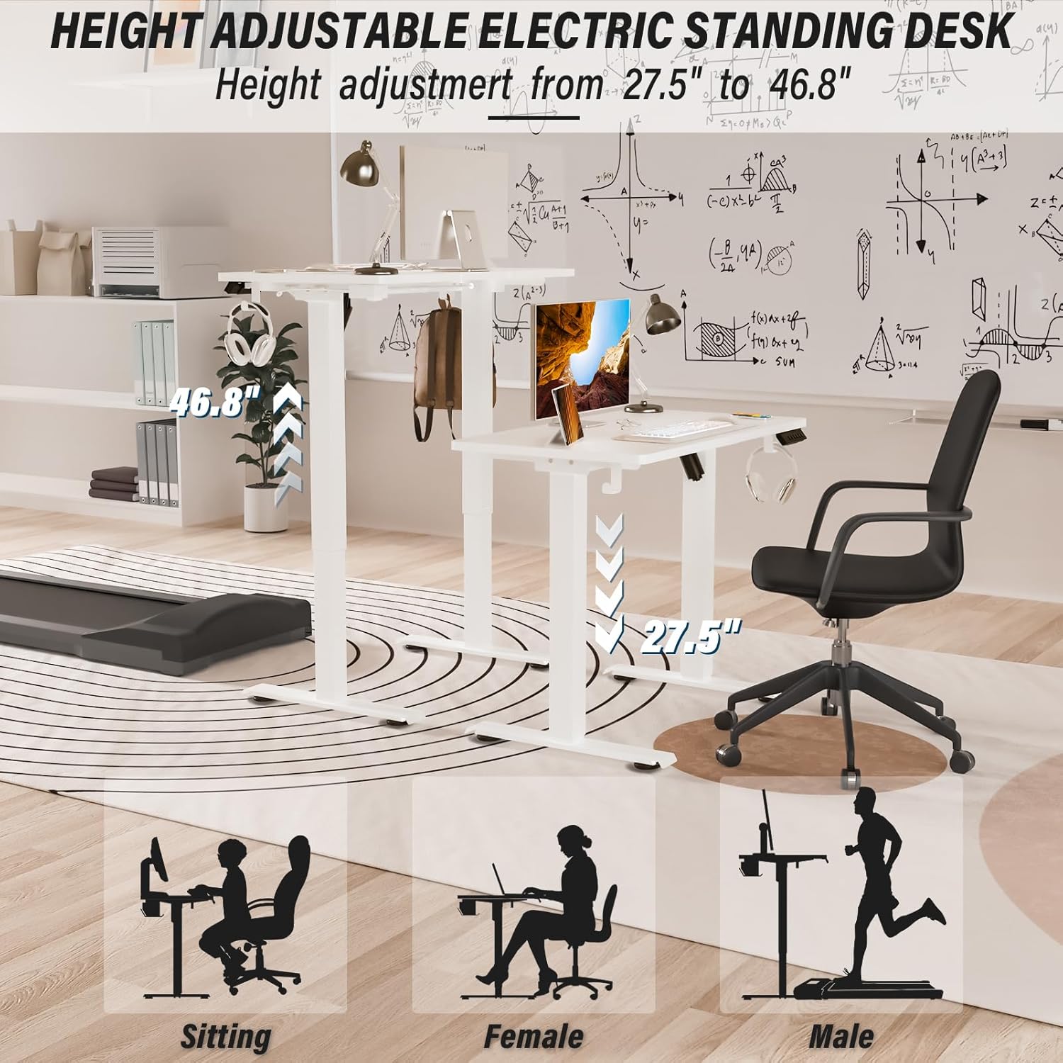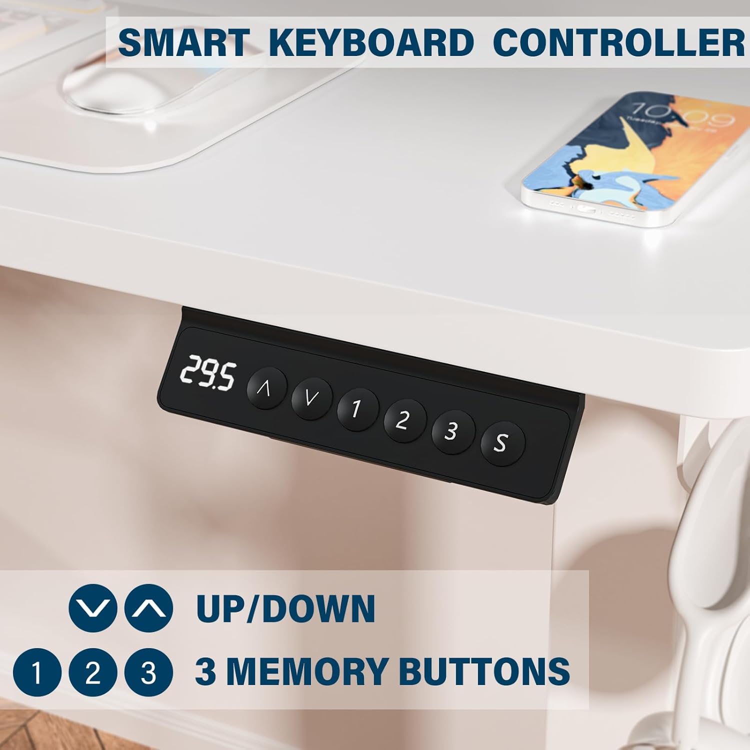 - Smooth Electric Lift Function: The desk features a powerful and quiet electric motor (<45dB). It lifts at 25mm/s, with a height adjustment range of 27.6" - 45.3", accommodating different heights for various needs. The adjustable desk comes with an easy-to-use control panel and memory function, allowing you to preset up to 3 frequently used heights for enhanced efficiency and comfort at work.