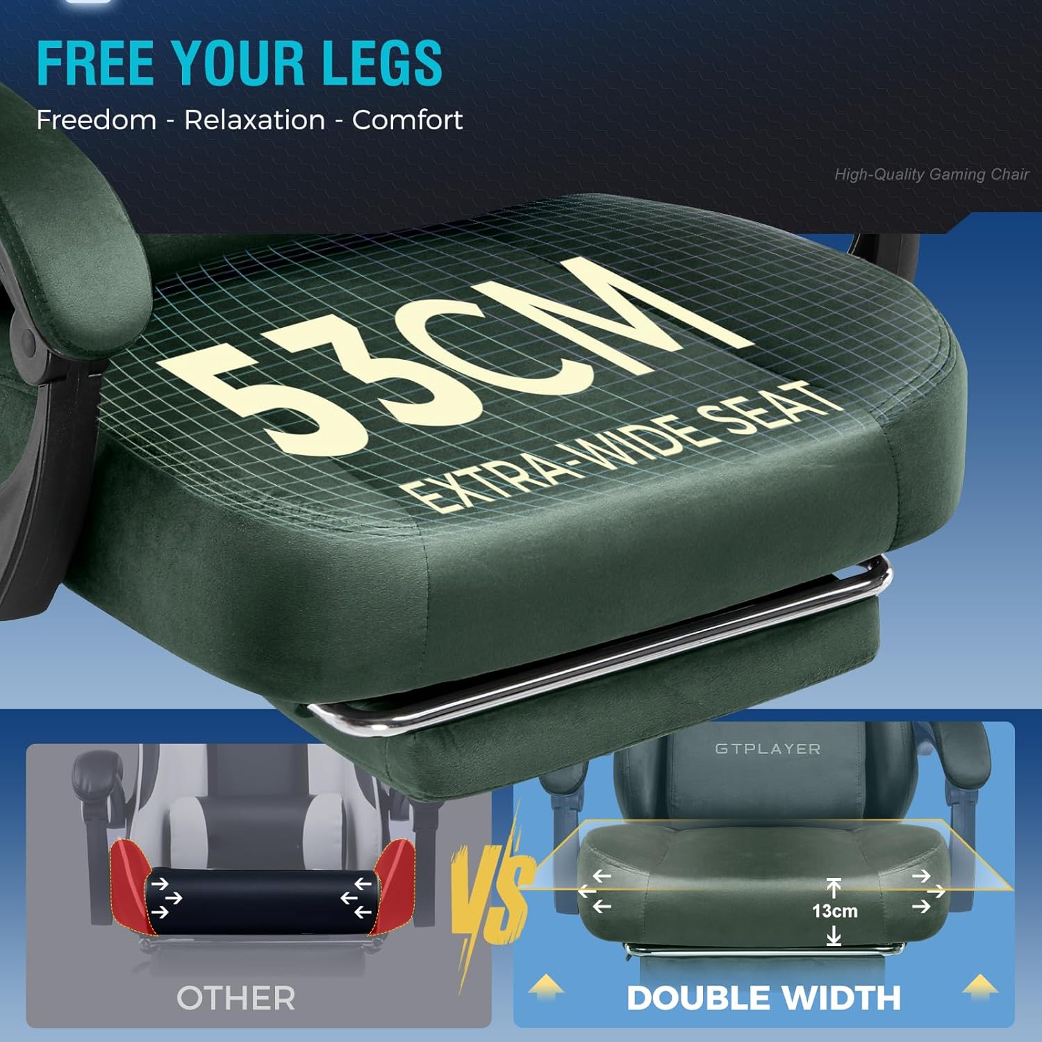 GTPLAYER Gaming Chair Fabric with Pocket Spring Cushion, Big and Tall Gamings Chairs 350LBS High Back Computer Chair with Footrest for Adults Lumbar Support Swivel Game Chair for Office Gaming Green
