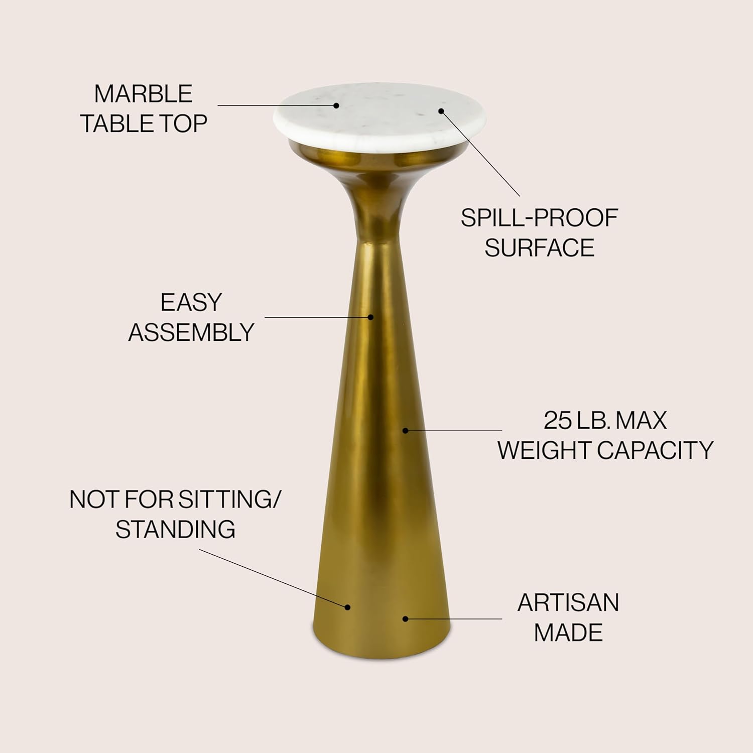 JONATHAN Y END1009A Oliver 22.25" Mid-Century Glam Retro Metal Drink Table with Marble Top, Gold/White for Living Room, Bedroom, Office, Bathroom