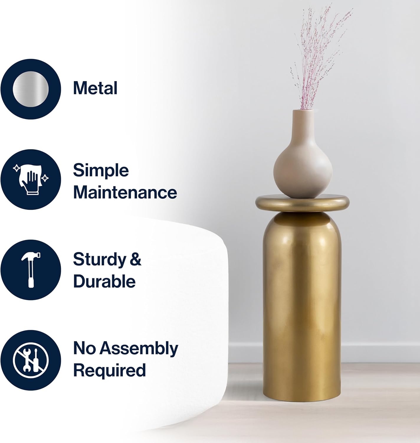 - At 22.75" tall, this contemporary pedestal is the perfect height for beside a chair