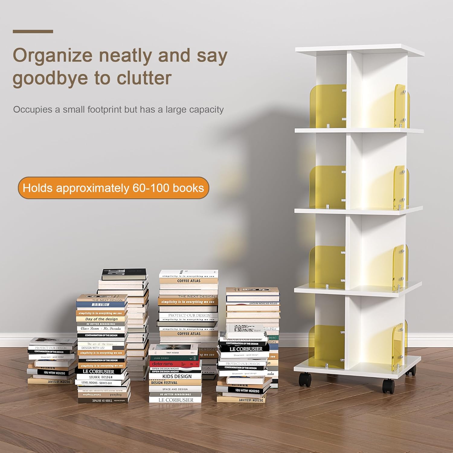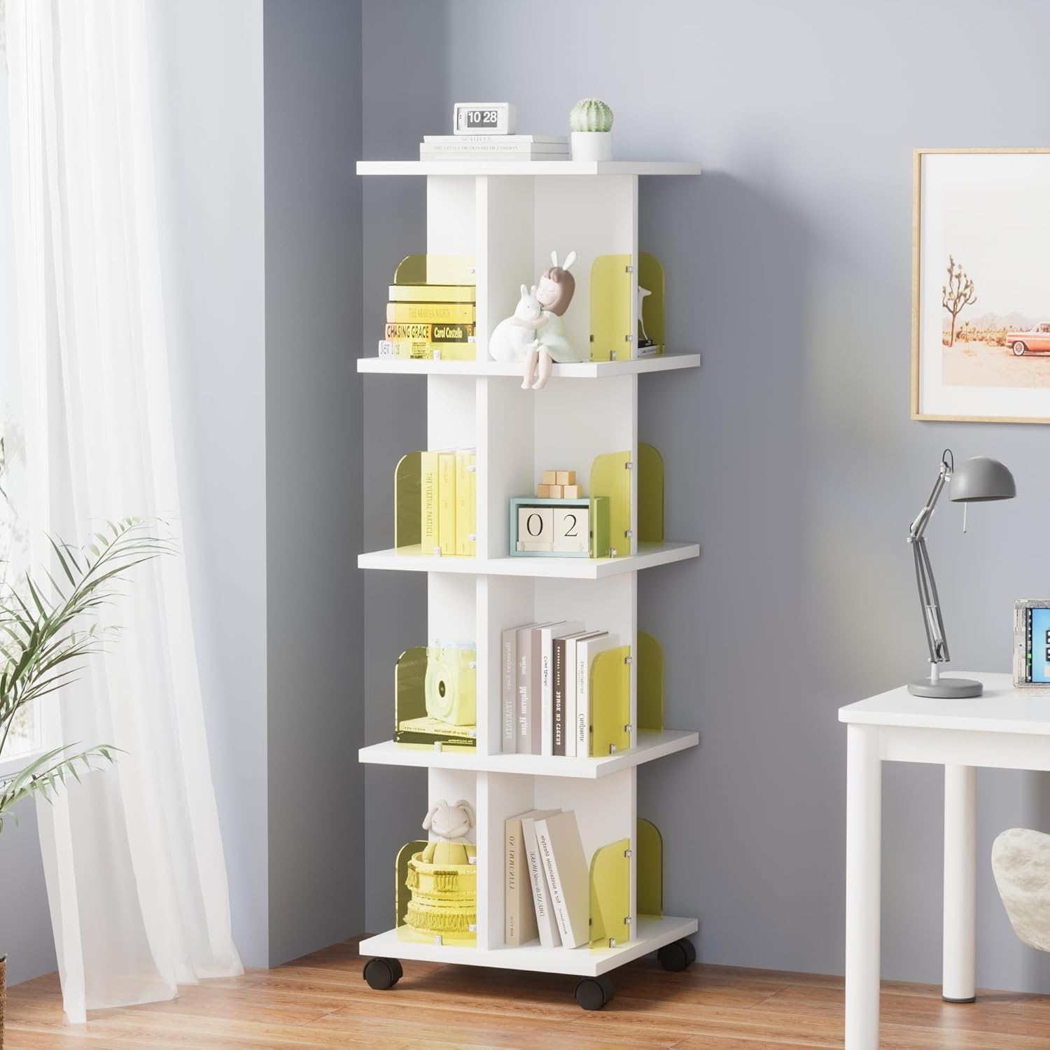 VECELO 4-Tier Rotating Bookshelf, Modern Swivel Bookcase, Vintage Book Shelf for 360° Display, Stackable Shelves Floor-Standing Storage for Home Office, Solid Wood, Smooth Spinning, White