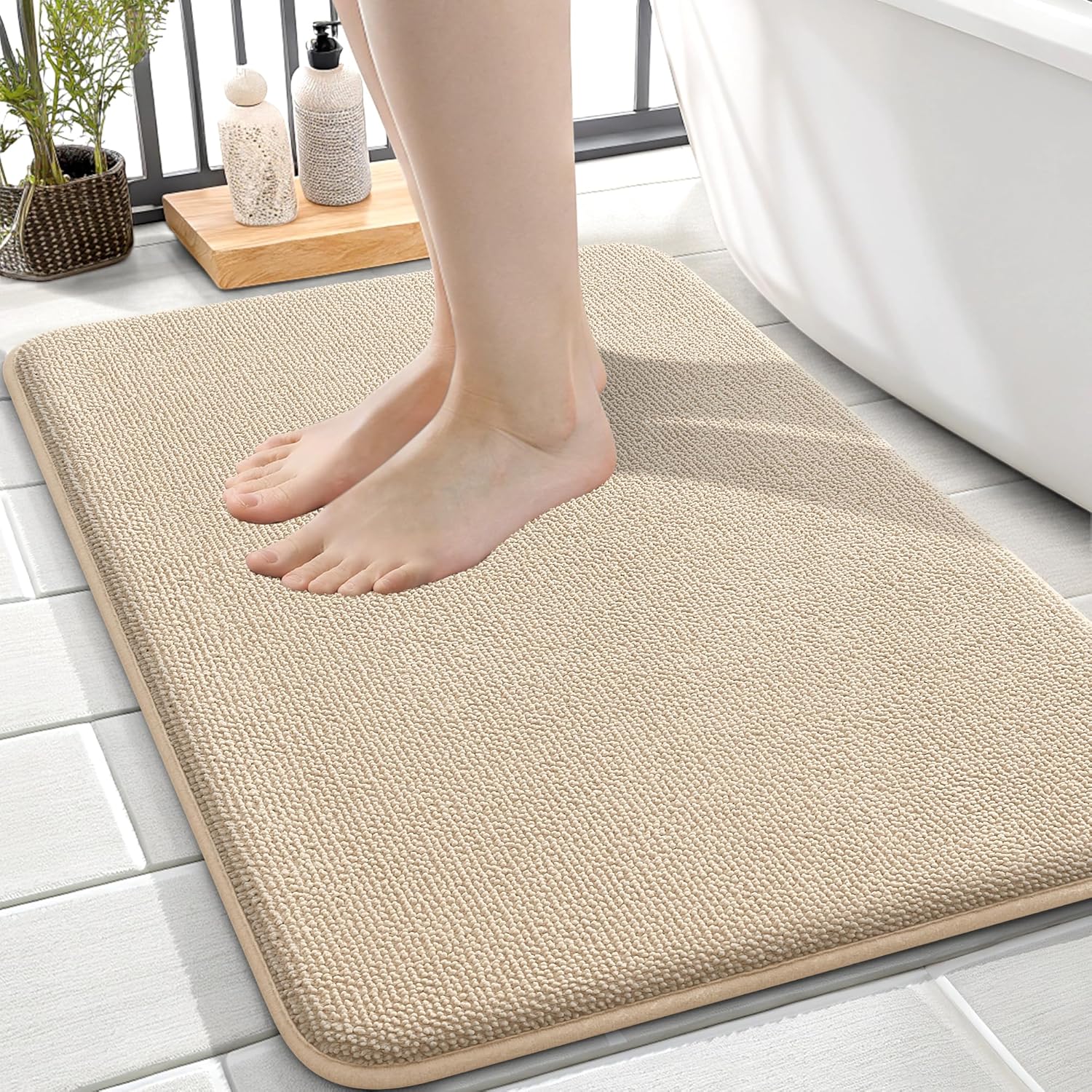 OLANLY Thick Memory Foam Bath Mat Rug 24x16, Extra Soft Absorbent Bathroom Rug, Quick Dry Bath Mats, Non-Slip, Machine Washable Carpet for Bathroom, Tub and Shower, Home Decor Accessories, Beige