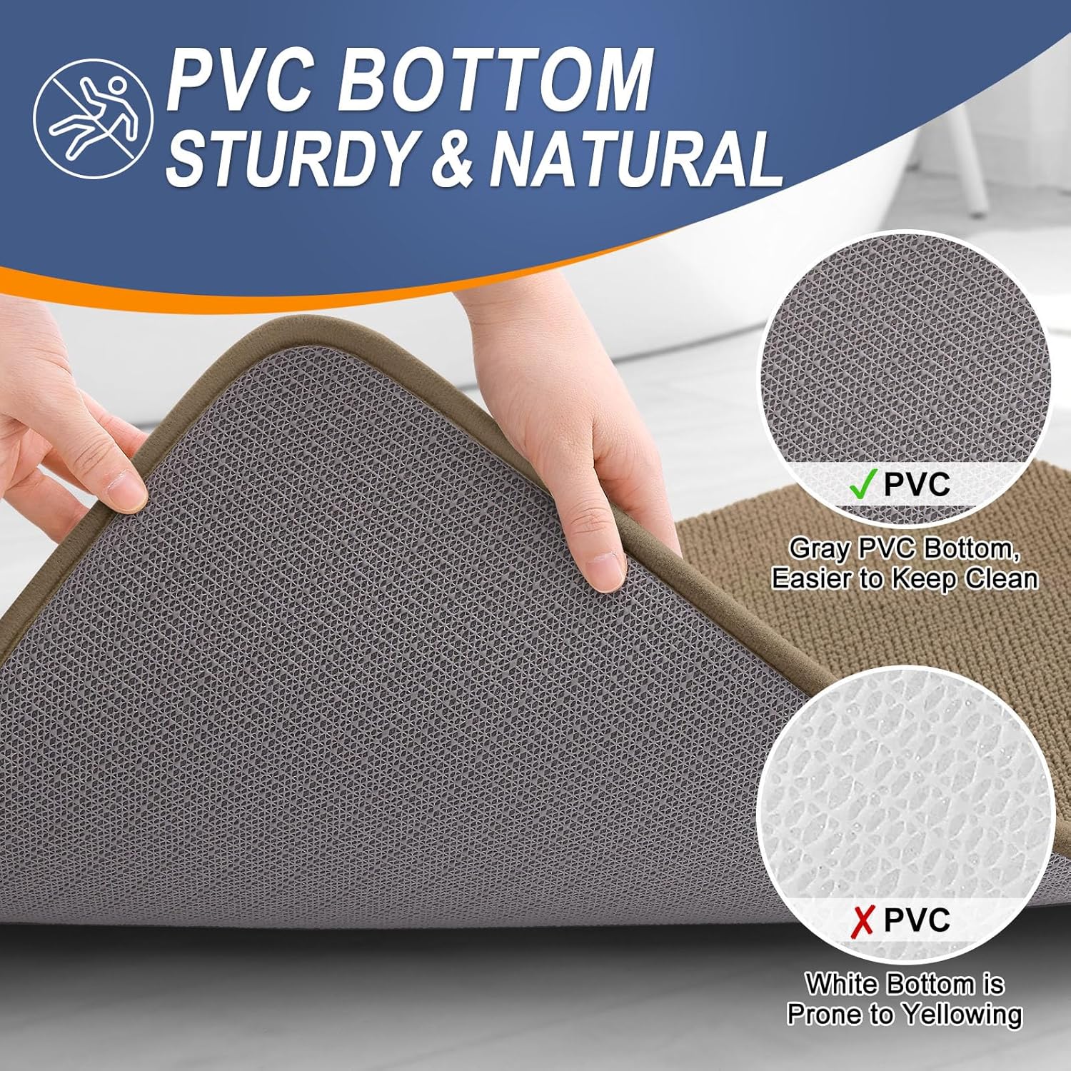 - [Sturdy PVC Support] OLANLY's bathroom mat is equipped with a robust and enduring PVC backing, which is designed to avoid any movement or slipping. This excellent structure distinguishes it from mats with rubber backing that may deteriorate as time goes by. Make sure the area under the rug remains dry for the best performance, and never put it on wet surfaces.
