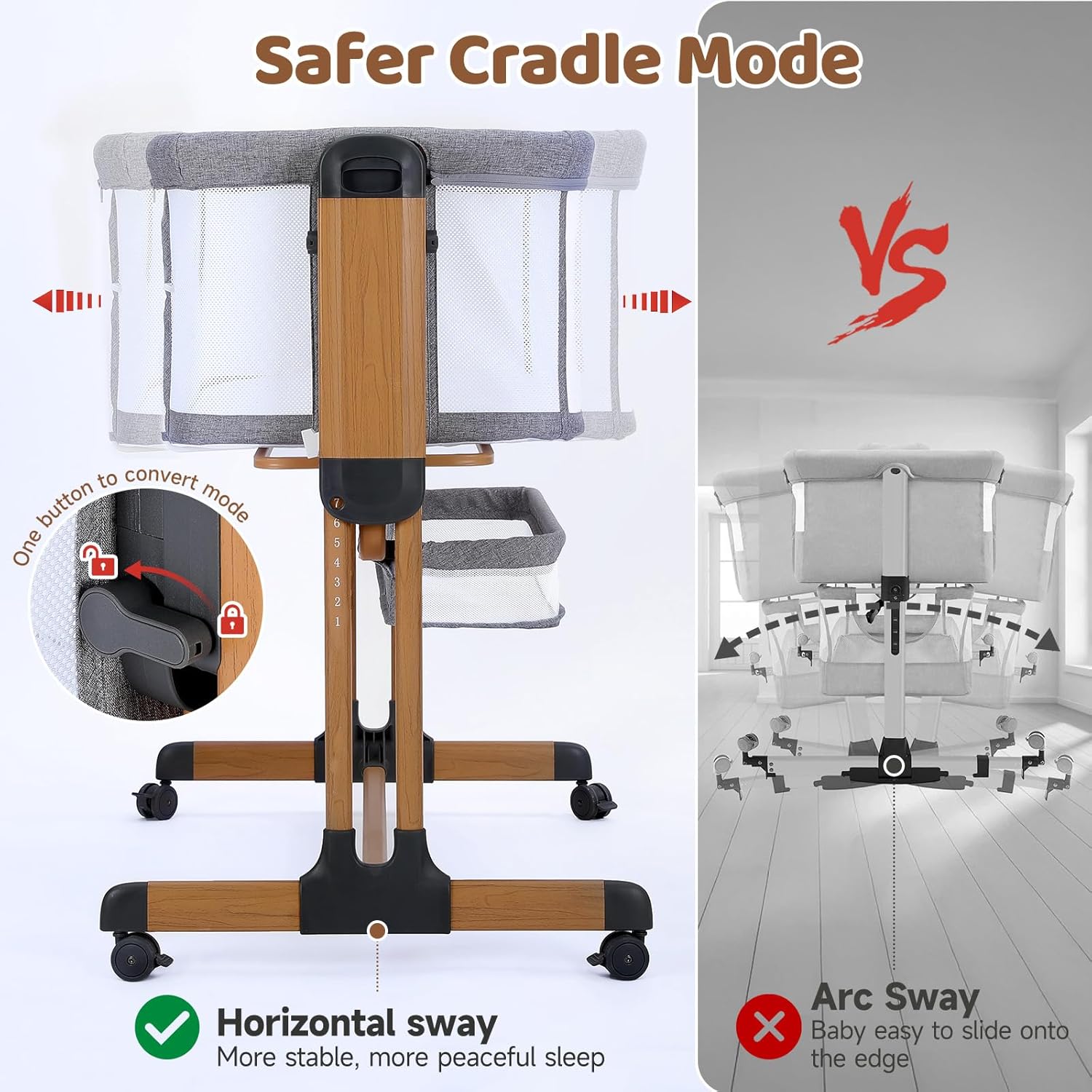 - 【Scientific Rocking Bassinet for Baby】 The cradle is designed to rock horizontally rather than in an arc, providing a safer and more stable sleeping environment for baby. The rocking bassinet allows parents to read a book or relax while soothing baby.