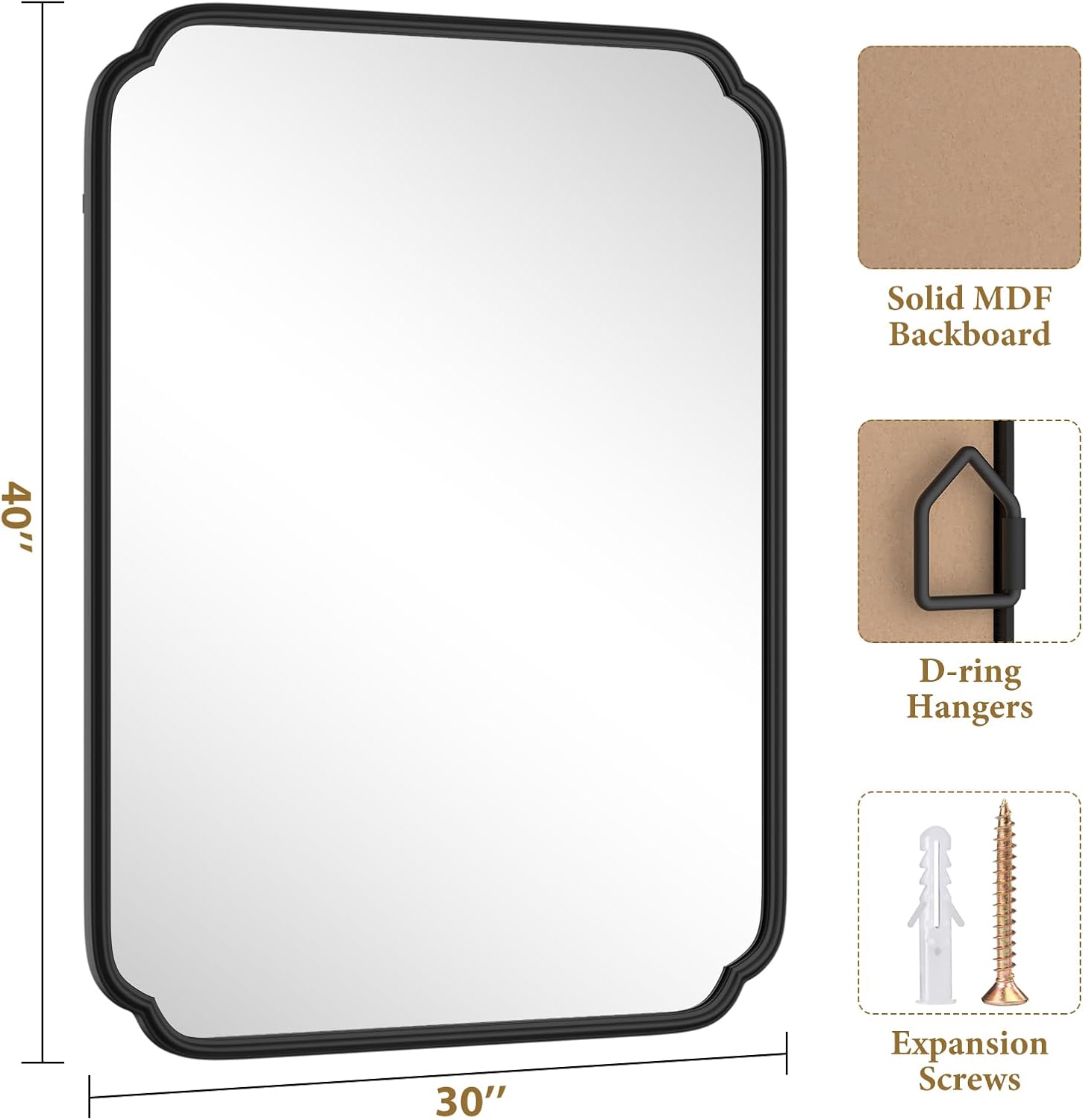 Matte Black Bathroom Vanity Mirror for Over Sink 30" x 40" Modern Rounded Corner Rectangle Wall Mirror Decorative with Non-Rusting Iron Metal Framed (Horizontal/Vertical)