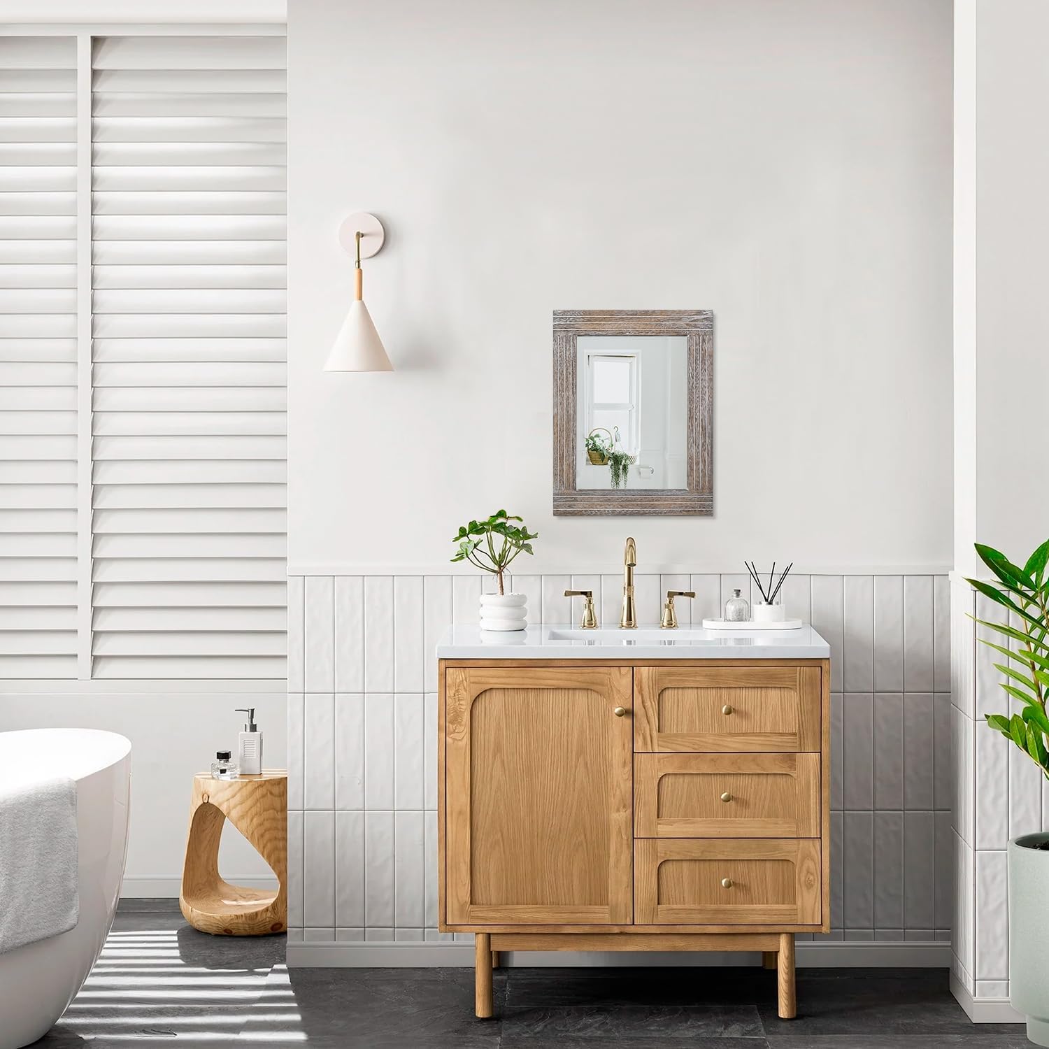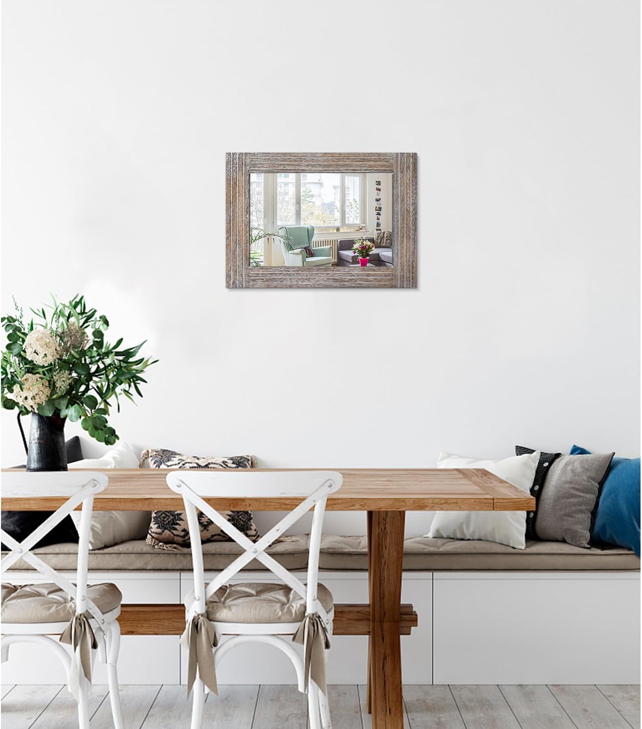 - Style and elegance: The superior natural solid wood frame with rustic colour has a subtle vintage feel. This farmhouse style wall mirror will bring a rustic feel to your space