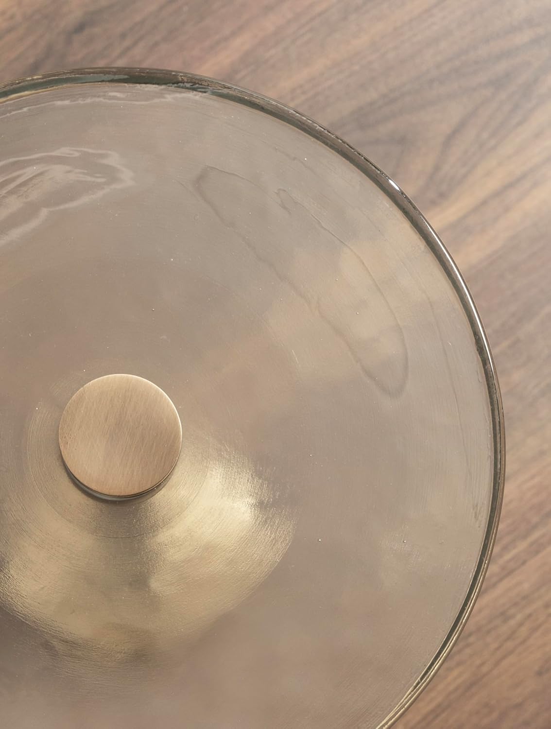 Kate and Laurel Xyler Modern Round Metal and Glass Drink Table, 10 x 10 x 24, Clear Glass and Antique Brass, Transitional Plant Pedestal Table for Use as Indoor Plant Stand or Small Bathtub Table