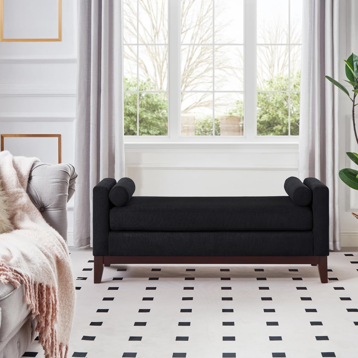 24KF Large Upholstered Boucle Fabric Ottoman with Pillows,Comfort Padded Window Bench for Living Room,Entryway Bench,5095-Black