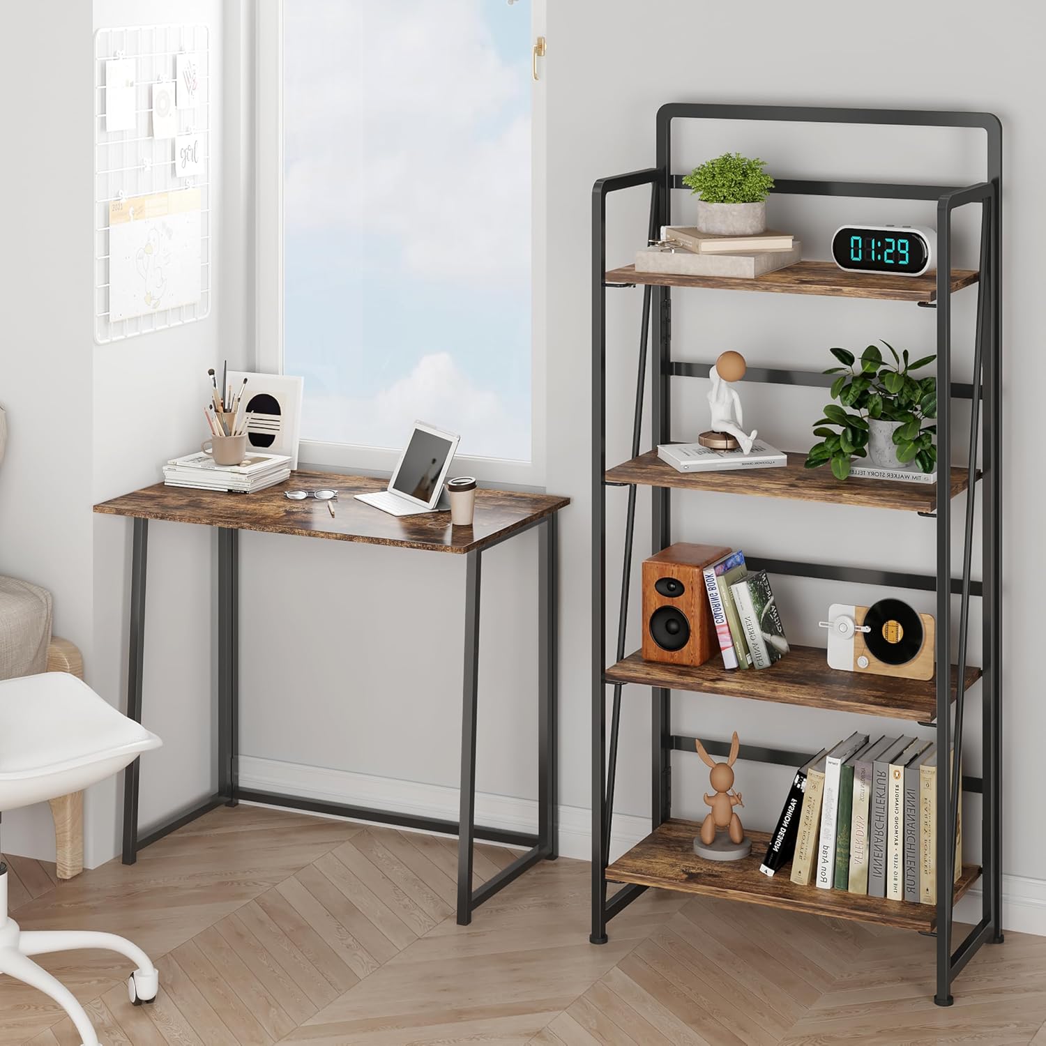 BHG No Assembly Folding Bookshelf for Living Room,Collapsible Book Shelf for Home Office, Portable Bookcase Storage Organizer Rack Shelves