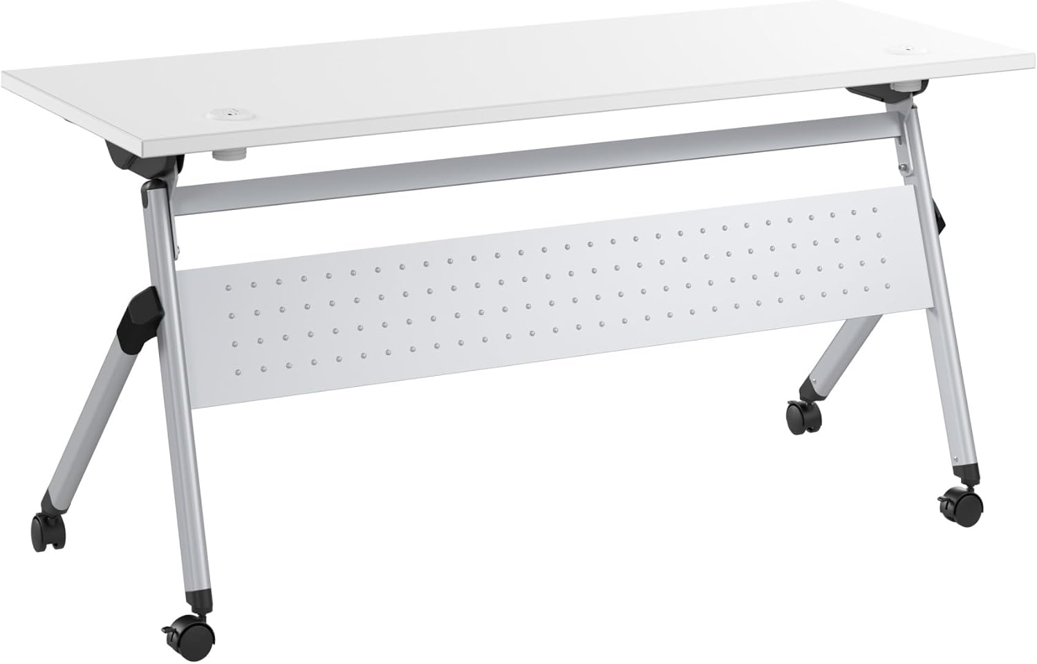 Bush Business Furniture Folding Training Table, 60 inch Desk with Powered Grommets, Commercial-Grade Bundle for Office or Classroom, Envision Collection, White