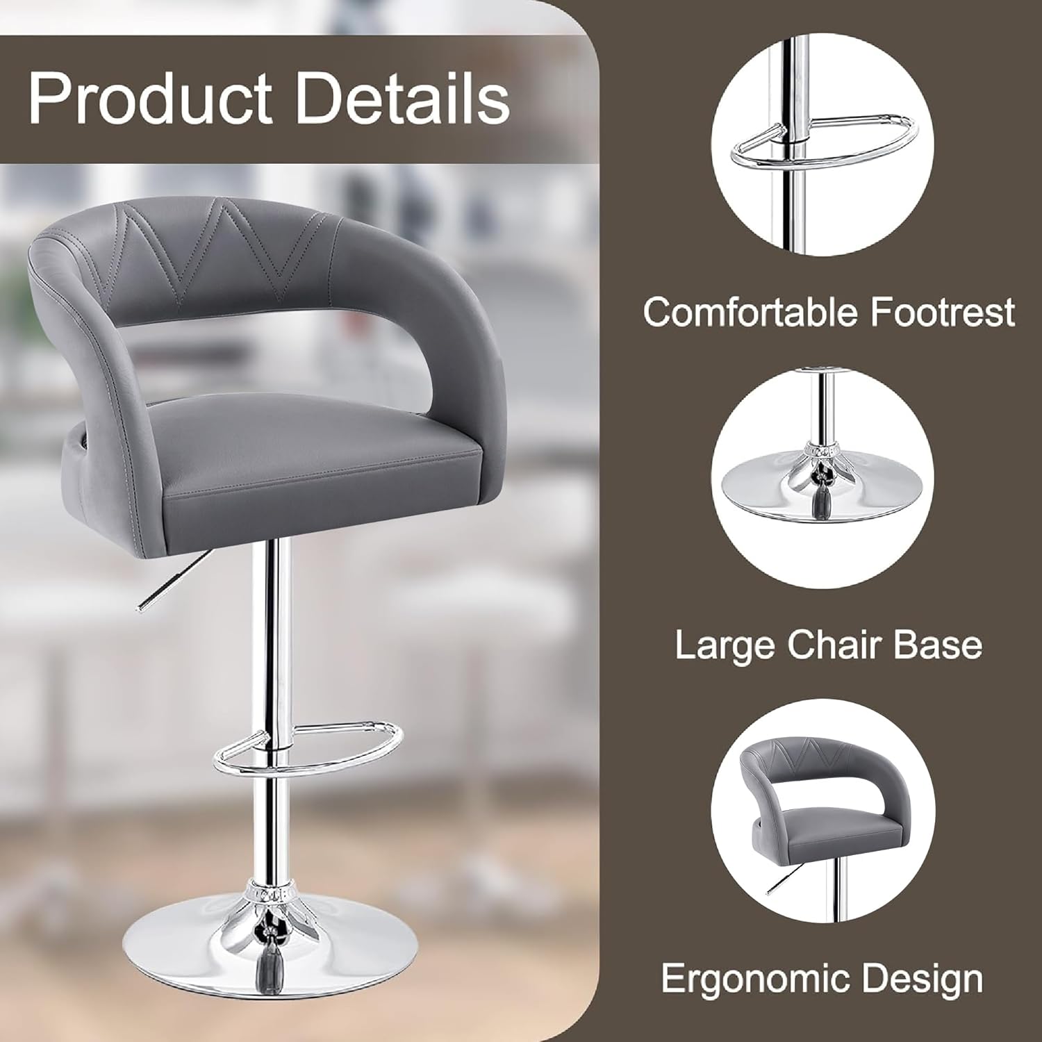 - Perfect Adjustable Height And Orientations: This bar stools comes with a Air-lift handle underneath the seat, with the raised handle, you can easily adjust the height of the seat between 25.6-33.4 inches, suitable for people of different heights and 35inch-45inch counter heights. And the barstools can rotate 360° to switch the direction freely, swivel bar stools can be more flexible and provide you with more convenience.