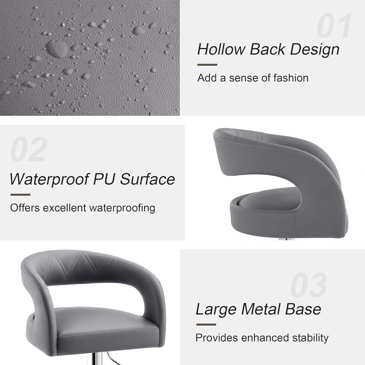 - Waterproof PU Leather Design: The bar stool 3.14 inches high-density thickened sponge provides you with solid back support and counter height stools will not be