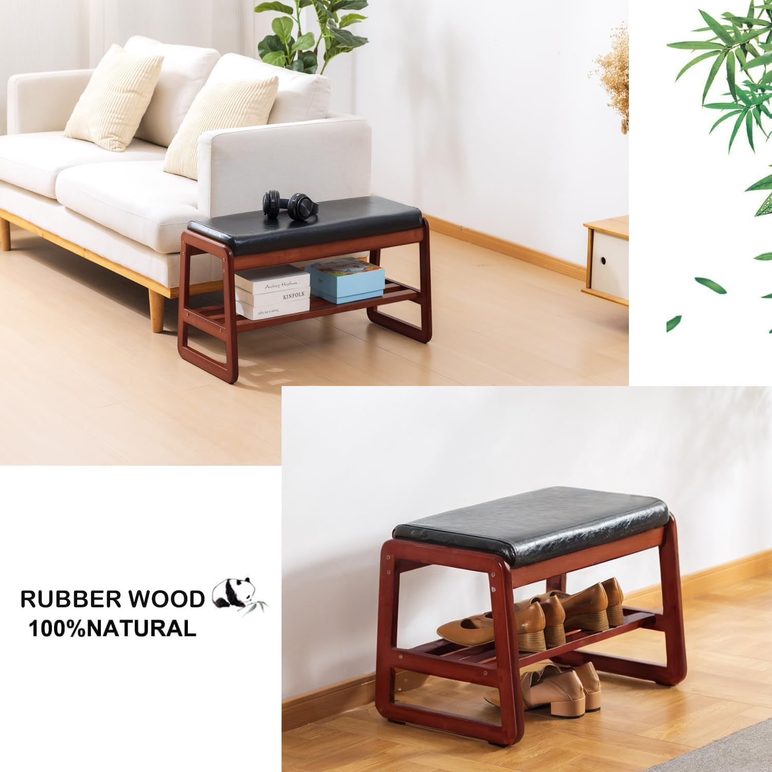 - 【Quality material】The whole solid wood shoe bench is made of 100% rubber wood material, solid wood texture is good and hard, beautiful pattern, decorative strong, very environmentally friendly.