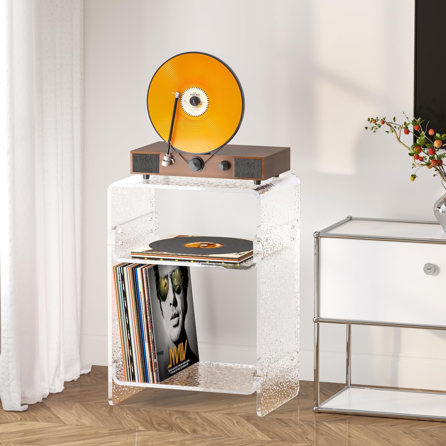 - 【Multi-Purpose & Versatile】This versatile clear acrylic table can be used as a bedside nightstand, a modern end table, a small plant stand, or even a vinyl record player table. Its lightweight design makes it easy to move and perfect for temporary setups, making it an excellent choice for college dorms, urban apartments, or workspace refreshes. Need a small storage solution? Use it to organize items in bathrooms, entryways, or home offices.