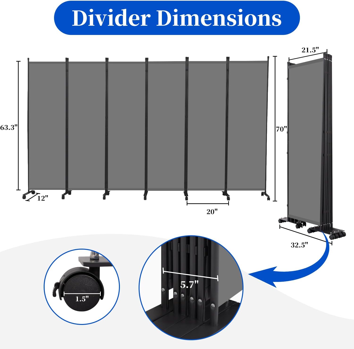 - Create Privacy Space: The 6 panel room divider measures 132"W x 70"H. Room partition is designed to create a private space, whether it is placed in a bedroom or study at home or a breakout area in an office or conference room. It provides a visual privacy partition, allowing you to enjoy peace and focus while working, studying or resting without outside distractions
