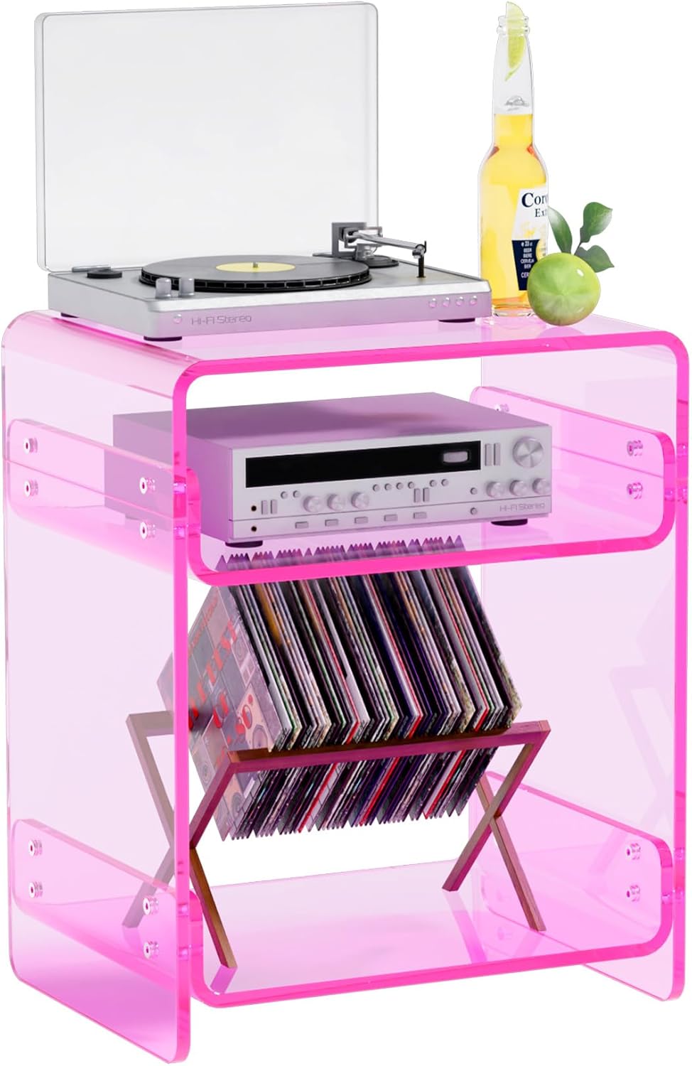 - 【Multi-Purpose & Versatile】This versatile clear acrylic table can be used as a bedside nightstand, a modern end table, a small plant stand, or even a vinyl record player table. Its lightweight design makes it easy to move and perfect for temporary setups, making it an excellent choice for college dorms, urban apartments, or workspace refreshes. Need a small storage solution? Use it to organize items in bathrooms, entryways, or home offices.