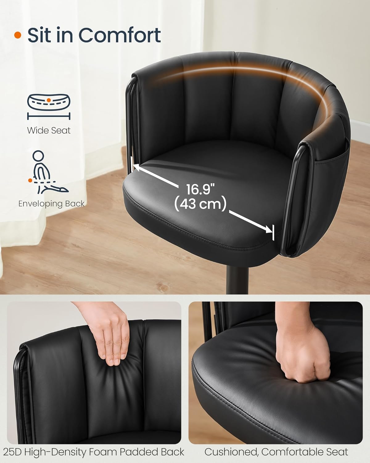 - 【STYLE MEETS STORAGE】This set of 2 bar stools features an upholstered curved back adorned with PU leather, exuding sophistication while cleverly integrating storage pockets to hold your mobile phones, remotes, or other small essentials