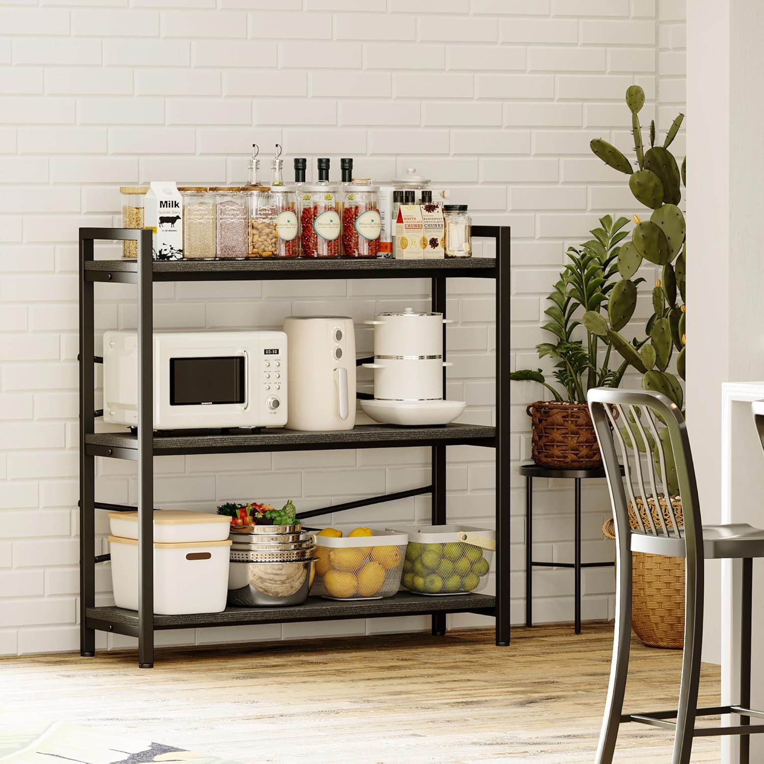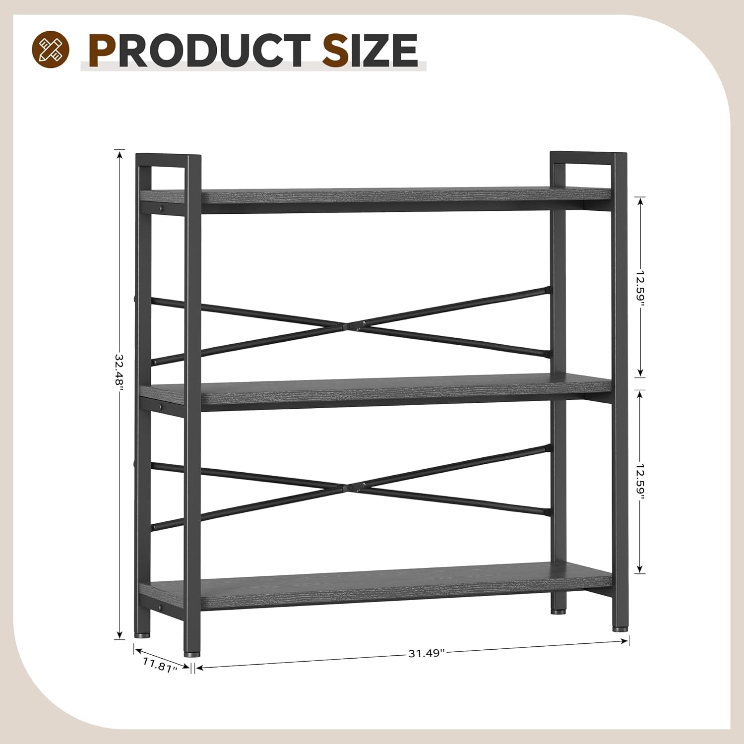Book Shelf, 3 Tier Bookshelf 31.49" Width, Book Shelf Storage and Organization, Wooden and Metal Industrial Bookcase, Large Book Shelves for Home Living Room Bedroom Office Storage(Grey)