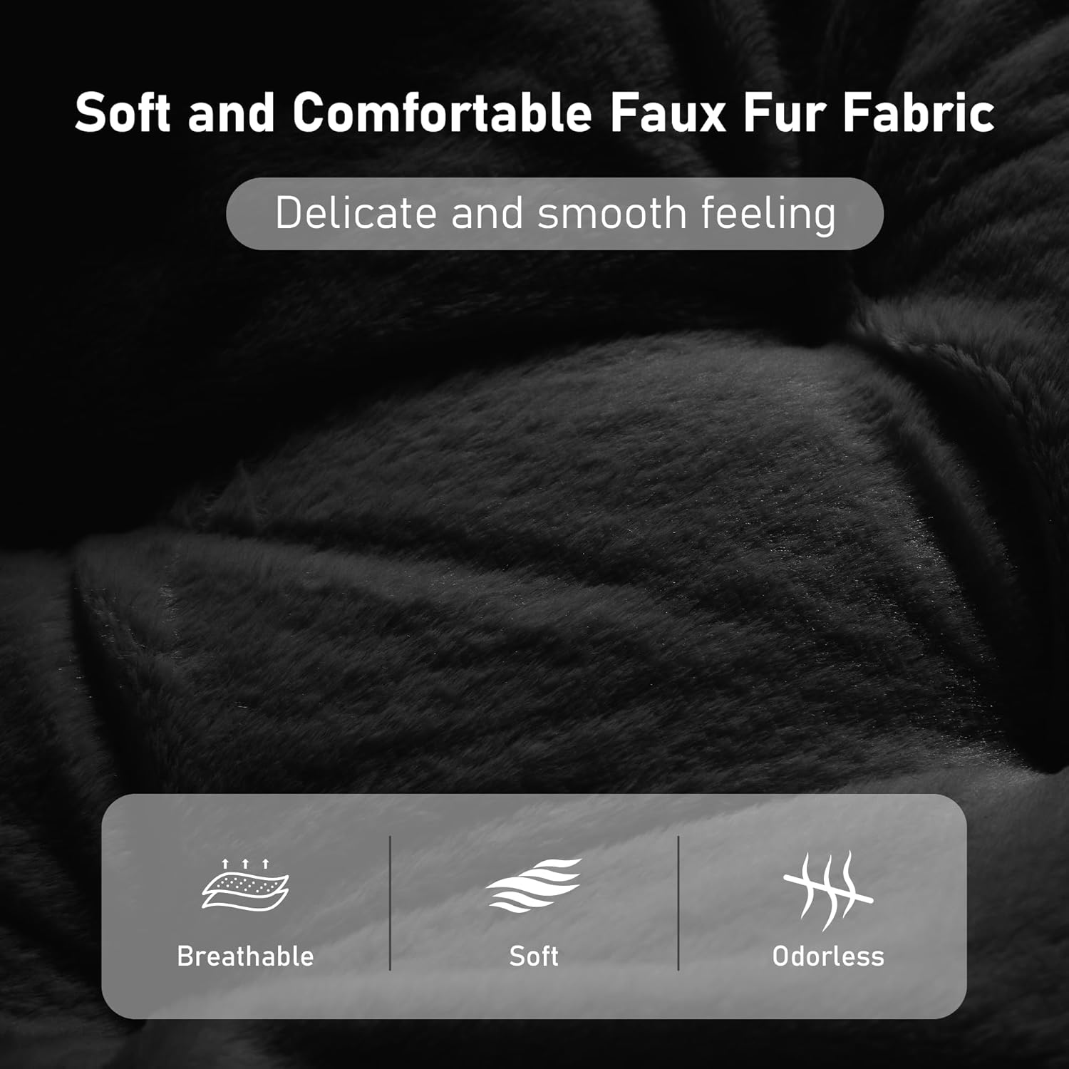 Comfy Oversized Saucer Chair with Ottoman,Soft Faux Fur Reading Lounge Chair for Adults,Stable X-Large Metal Frame and Non-Slip Pad,Cozy Chair for Bedroom, Living Room, Dorm, Office, Black