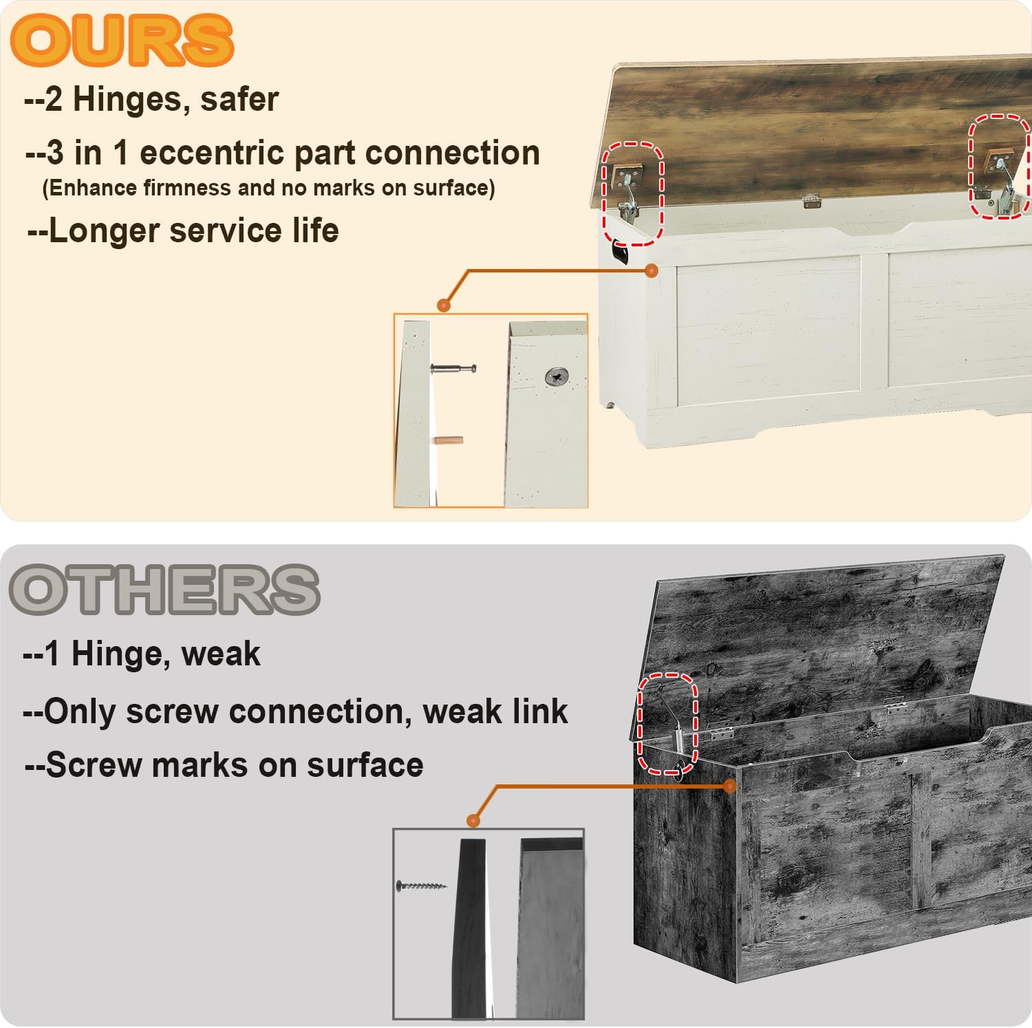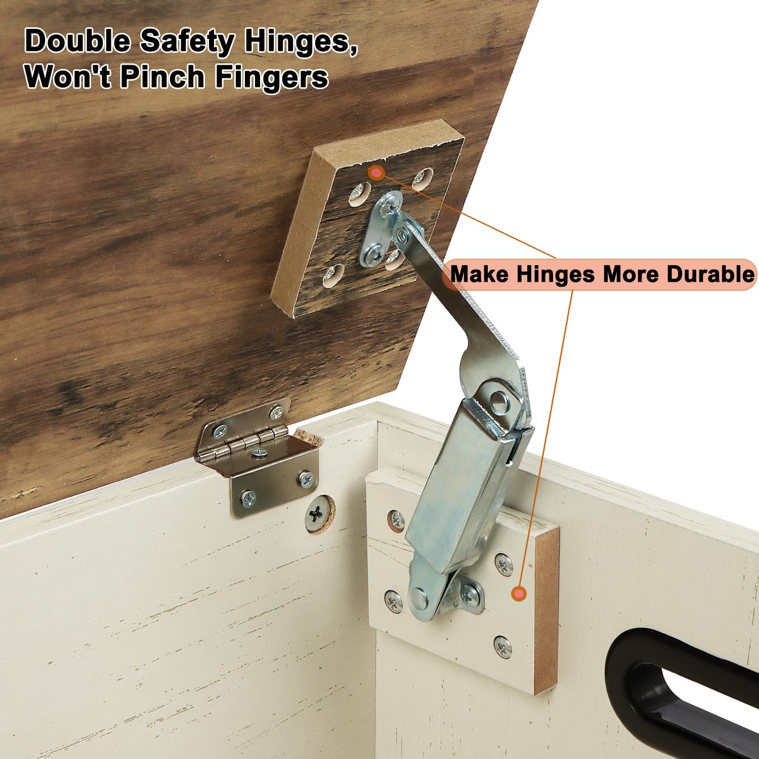 - 2 Safety Hinges- The entryway storage chest is equipped with 2 advanced safety hinges that can stop at any position, allowing you to open and close it slowly without closing suddenly and pinching your fingers. The maximum opening angle is 90°