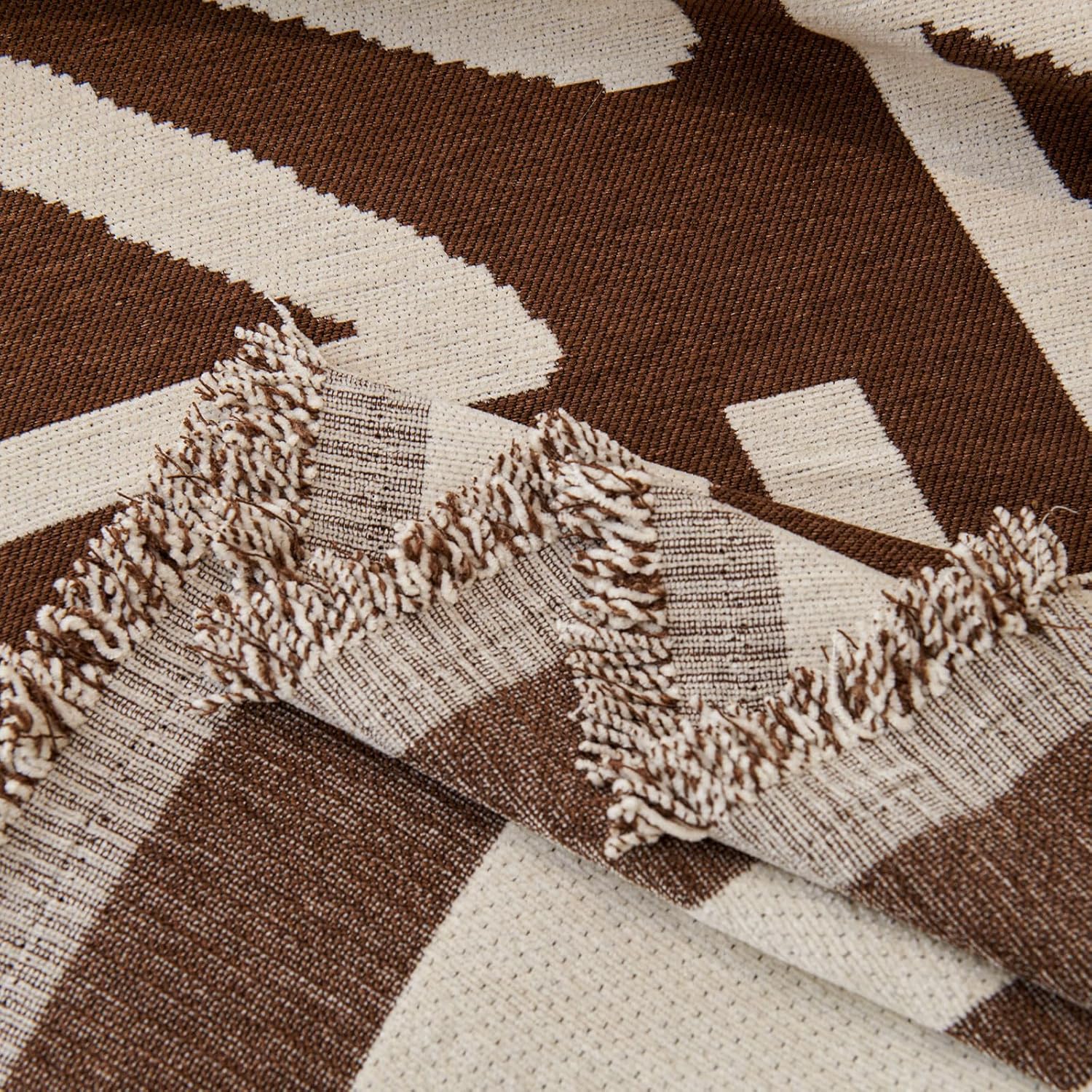 STACYPIK Reversible Boho Chocolate Sofa Cover Durable Couch Cover for 1 Cushion Couch Sofa Cover for Dogs Non Slip Jacquard Geometric Pet Armchair Cover with Tassels Sofa Protector Blanket-71X71IN