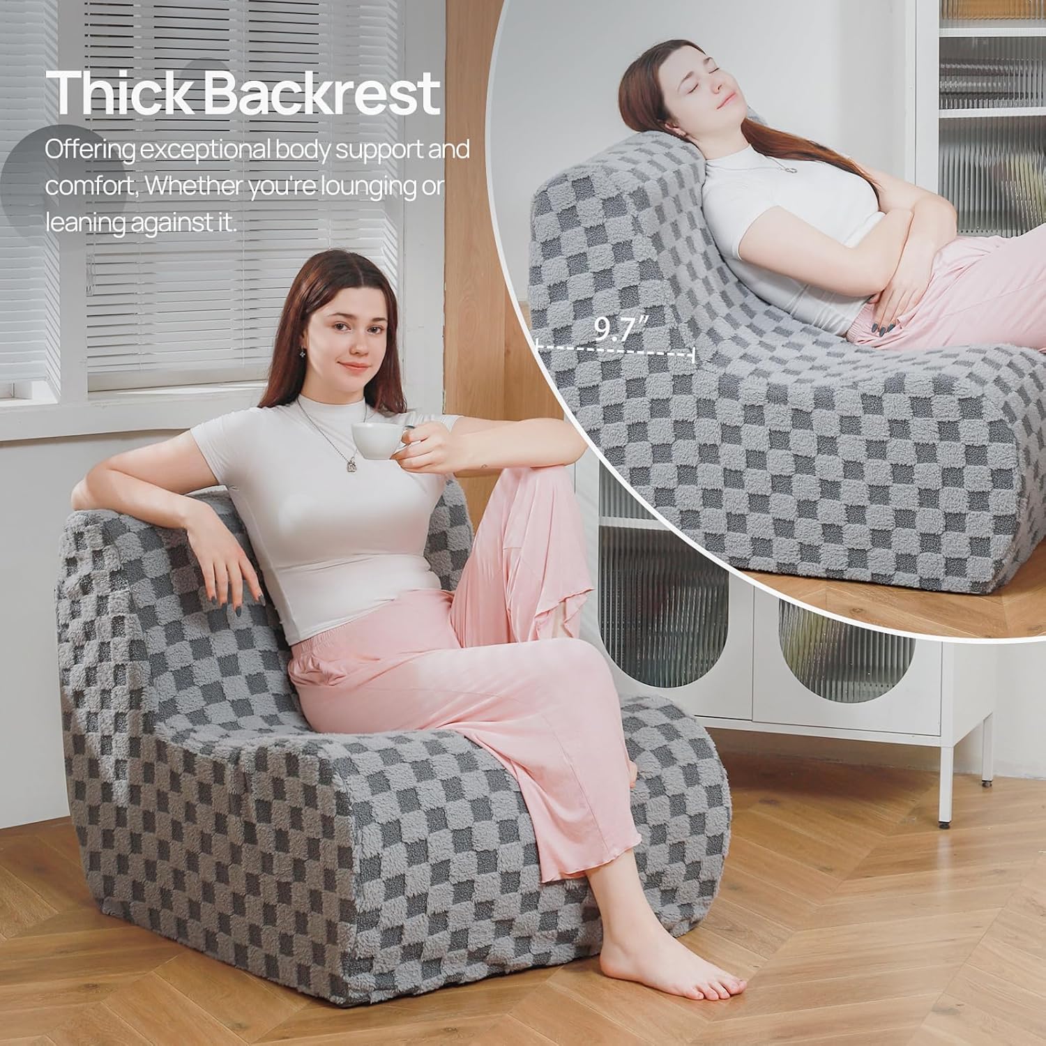 - High-Density Sponge – This bean bag chair features an L-shaped ergonomic structure that wraps around your body, providing targeted support for the back, waist, and hips. The high-density sponge filling offers superior rebound, resisting deformation even after daily use, making it ideal for adults seeking long-lasting comfort.