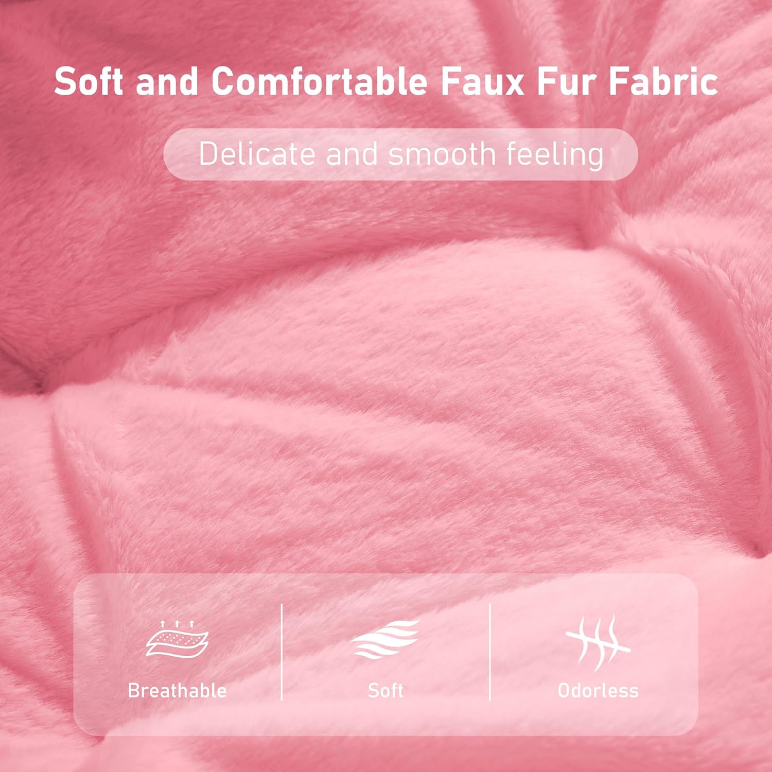 Comfy Oversized Saucer Chair with Ottoman,Soft Faux Fur Reading Lounge Chair for Adults,Stable X-Large Metal Frame and Non-Slip Pad,Cozy Chair for Bedroom, Living Room, Dorm, Office, Pink